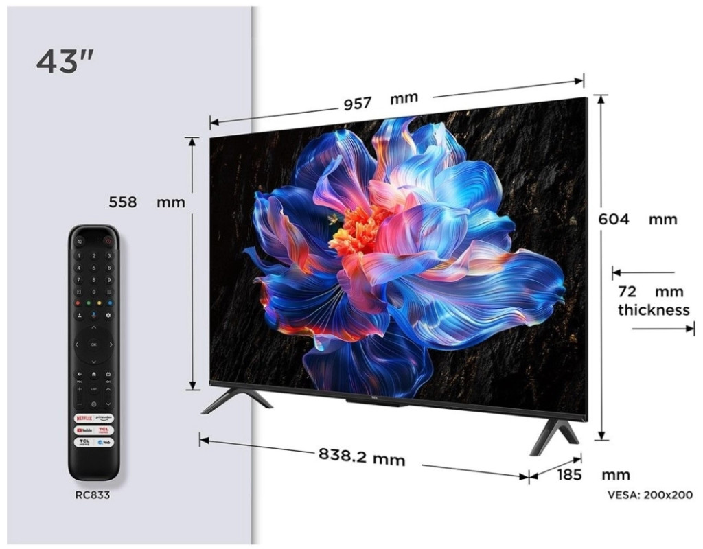 | Телевізор TCL 43P6K — це сучасний девайс, який поєднує в собі передові технології і стильний дизайн, щоб забезпечити неперевершений досвід перегляду. Завдяки діагоналі екрану 43" і роздільній здатності 4K Ultra HD, телевізор пропонує високу чіткість та деталі, дозволяючи вам глибше зануритися в світ розваг. Телевізор підтримує технологію High Dynamic Range (HDR), що забезпечує яскраві кольори і глибокий контраст, доповнені технологіями покращення зображення, такими як HLG, HDR 10, Ai Clarity, Ai Color, Ai HDR та Ai Contrast. Це створює неймовірно реалістичну картинку, де кожен відтінок відображений з вражаючою точністю. Оснащений матрицею HVA з підсвічуванням Direct LED, телевізор гарантує трикратне посилення контрасту і широкий кут огляду понад 178°, що дозволяє насолоджуватися чіткими зображеннями навіть у великих приміщеннях або в колі друзів. Частота розгортки панелі 60 Гц разом з технологією MEMC (Motion Estimation, Motion Compensation) забезпечує плавність під час перегляду динамічних сцен, зберігаючи їх чіткість, що особливо цінують геймери та шанувальники спортивних трансляцій. Звукова система телевізора, потужністю 20 Вт, підтримує Dolby Audio, що створює об’ємний звук із чіткими діалогами й деталізованими ефектами. Це ідеально підходить для перегляду фільмів та серіалів, забезпечуючи ефект присутності, де б ви не знаходились у кімнаті. ТВ має можливості підключення через Wi-Fi та Bluetooth, надаючи широкі можливості для інтеграції з іншими пристроями чи стрімінговими сервісами. Зручність користування телевізором підвищується завдяки платформі Google TV, що відкриває доступ до таких сервісів, як Netflix, YouTube та Disney+. Інтуїтивна навігація і персоналізовані рекомендації допомагають знаходити саме той контент, який вам до душі. Дизайн телевізора TCL 43P6K — безрамковий і мінімалістичний, що дозволяє максимально зосередитися на перегляді контенту. Його металевий корпус органічно вписується в будь-який інтер'єр, додаючи елегантності вашій оселі. Вибір між настінним монтажем або установкою на підставці надає гнучкість у розміщенні. Забезпечення захисту очей з функціями, такими як зменшення синього світла, оптимізація природного освітлення та технологія Flicker-Free (усунення мерехтіння), робить тривале перебування перед екраном комфортним та безпечним для зору. Інтерфейси підключення доповнені широким вибором портів: 1 x RJ-45, 3 x HDMI, CI, USB і 1 x оптичний аудіо, що спрощує підключення зовнішніх пристроїв, роблячи телевізор ідеальним мультимедійним центром для вашого дому. |