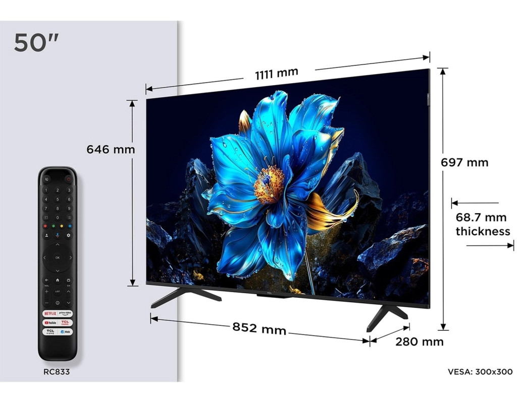 | Телевізор TCL 50P7K переносить ваше розважальне середовище на новий рівень завдяки вражаючій якості зображення, стилю та інноваційним функціям. Поєднання унікальних технологій і витонченого дизайну робить цей телевізор ідеальним вибором для будь-якого інтер'єру. Відчуйте дійсно реалістичне зображення на 50-дюймовому екрані з роздільною здатністю 3840 x 2160 пікселів. В основі TCL 50P7K лежить HVA матриця з підсвічуванням Direct LED, що забезпечує виразний та яскравий контраст, особливо в темних сценах. Завдяки підтримці високодинамічного діапазону (HDR), в тому числі Dolby Vision, HLG, HDR 10+, ви можете насолоджуватися бездоганними деталями та життєподібними кольорами, які роблять кожну сцену захопливою. Технології покращення зображення, як-от Ai Clarity, Ai Color, Ai HDR та інші, працюють в унісон з потужним процесором AiPQ, щоб адаптувати кольори і контрастність під кожен кадр, створюючи враження справжньої присутності в кожному сюжету. Дизайн TCL 50P7K безрамковий із тонким металевим корпусом, що надає йому сучасного вигляду, який гармонійно вписується у будь-який інтер'єр, перетворюючи ваш простір на унікальний арт-простір. Гнучкі можливості монтажу дозволяють розмістити телевізор як на підставці, так і на стіні, згідно зі стандартом VESA (300x300 мм). Google TV, яким оснащений цей телевізор, надає зручну навігацію і пропонує персоналізовані рекомендації, забезпечуючи легкий доступ до популярних стрімінгових сервісів. Система Wi-Fi та підтримка Bluetooth роблять підключення зручним та бездротовим, що дозволяє вільно користуватися усіма функціями Smart TV. Аудіосистема TCL 50P7K з потужністю 2 x 10 Вт забезпечує об'ємний, насичений звук завдяки технології Dolby Atmos, створюючи справжнє кінематографічне відчуття в вашій вітальні. Це гарантує, що перегляд фільмів, геймінг або прослуховування музики принесе вам максимальне задоволення. Особливу увагу приділено захисту зору, що реалізується завдяки функціям зменшення синього світла, оптимізації природного освітлення та технології Flicker-Free. Це забезпечує комфортний та безпечний перегляд навіть при тривалому перебуванні перед екраном. Окрім вражаючих технічних характеристик, телевізор має широкий вибір підключень: HDMI, USB, LAN, а також інтерфейси для супутникового та антенного сигналу. Така універсальність дозволяє одночасно використовувати телевізор для підключення ігрових приставок, аудіосистем та інших пристроїв, роблячи TCL 50P7K дійсним центром ваших розваг. Телевізор TCL 50P7K — це не просто екран, а повноцінна екосистема для вашого домашнього відпочинку, де сучасні технології і стиль поєднуються у витонченому комплекті, що підкреслює вашу індивідуальність. |