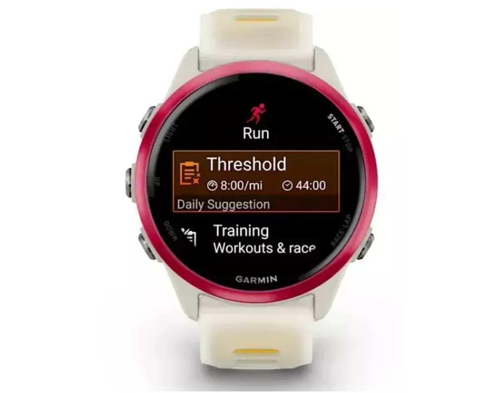 | Смарт-годинник Garmin Forerunner 570 - це ідеальне поєднання стилю, технологій і комфорту. Його 1.2-дюймовий AMOLED-дисплей з чітким, насиченим зображенням дозволяє легко керувати усіма функціями. Вишуканий алюмінієвий корпус додає міцності та легкості, завдяки чому годинник ідеально підходить для щоденного використання. Цей смарт-годинник підходить для всіх, адже він має унісекс-дизайн і доступний у кольоровій палітрі Bone/Raspberry/Mango. Кругла форма годинника надає йому класичний вигляд, що підійде до будь-якого одягу та стилю. Forerunner 570 забезпечує тривалу роботу - до 18 годин в режимі GPS, що дозволяє не турбуватися про підзарядку під час довготривалих тренувань. Завдяки передовій технології SatIQ, яка забезпечує точність позиціювання, ви завжди будете впевнені у своєму маршруті, навіть у найвіддаленіших куточках планети з використанням ГЛОНАСС. Музичні функції додають зручності: завантажуйте плейлисти з улюблених сервісів і насолоджуйтеся музикою, не потрібна наявність смартфона. Вбудовані динамік і мікрофон дозволяють приймати дзвінки та користуватися голосовими помічниками, що робить цей годинник справжнім помічником на кожен день. Що стосується тренувань, Forerunner 570 пропонує адаптивні плани від Garmin Coach, які допомагають налаштувати тренування під ваші індивідуальні потреби. Створюйте персоналізовані рекомендації для бігу, тріатлону або силових вправ. Динаміка бігу на зап'ясті надає контроль ключових показників як каденс, довжина кроку та інші. Додаткові можливості включають VO2 Max та моніторинг серцевого ритму. Годинник ретельно слідкує за вашим здоров'ям: моніторинг енергії Body Battery, дані кисню в крові, аналіз сну і багато іншого. Відстеження стресу та варіабельність серцевого ритму (ВСР) забезпечать вам гарне самопочуття щодня. Інтелектуальні функції, як Garmin Pay, дозволяють здійснювати безконтактні платежі. LiveTrack і безпека в надзвичайних ситуаціях допомагають відстежувати ваше місцезнаходження в реальному часі. Персоналізуйте свій годинник через Connect IQ Store. |