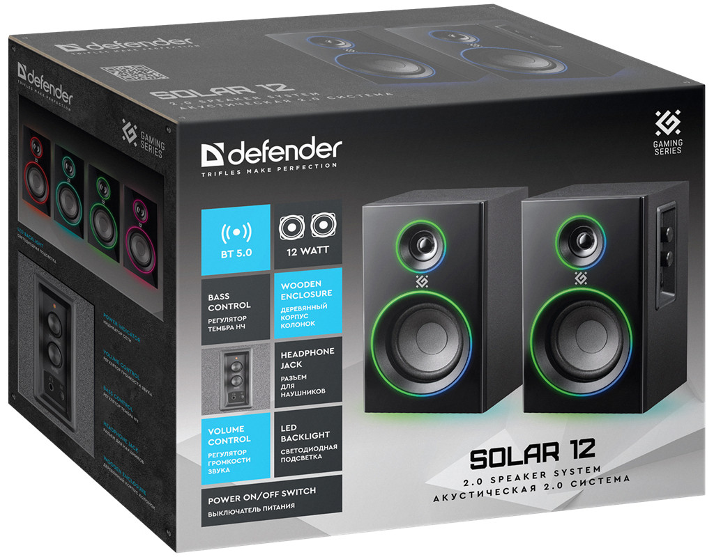 | Акустична система Defender Solar Black (65712) — це поєднання елегантного дизайну та високоякісного звуку у міцному дерев’яному корпусі, що надає вашим улюбленим мелодіям нове життя. Ці поличні акустичні колонки формату 2.0 створені для тих, хто цінує збалансоване та детальне звучання. З загальною потужністю 12 Вт, вони чудово відтворюють музику, фільми і навіть найдетальніші звуки улюблених ігор. Маючи частотний діапазон 100–20 000 Гц, Defender Solar Black гарантує глибокі баси та чисті верхні частоти, а регулювання низьких частот дозволяє вам персоналізувати звук під свої вподобання. Особливої уваги заслуговує LED підсвічування з чотирма режимами, яке додає сучасного вигляду вашим колонкам і створює атмосферу, що ідеально підходить для вечірок чи спокійних вечорів вдома. Якщо ж світлові ефекти не на ваш смак, їх легко можна вимкнути. Що стосується підключення, ці колонки можуть похвалитися різними варіантами. Інтерфейс Bluetooth 5.0 дозволяє легко підключати різноманітні пристрої без зайвих зусиль, забезпечуючи стабільний зв'язок і високу якість передачі звуку. Для тих, хто надає перевагу класичним методам, передбачені роз'єми mini Jack 3.5 мм та AUX, що робить їх сумісними з широким переліком аудіопристроїв. Ергономічність Defender Solar Black підкреслюється продуманим розташуванням элементів управління — зручне регулювання гучності та тембру робить керування інтуїтивно зрозумілим і легким. Довжина кабелів (до 1,3 м) дозволяє зручно розмістити колонки у будь-якому просторі, підкреслюючи універсальність і практичність цієї акустичної системи для будь-якої кімнати. Завдяки тому, що корпус виготовлений з високоякісної деревини (MDF), колонки не лише чудово виглядають, але й максимально розкривають потенціал звучання, надаючи звуку тепло і природність. Живлення від мережі гарантує стабільність роботи, роблячи Defender Solar Black ідеальним вибором для домашнього використання — як для роботи та навчання, так і для занурення у світ розваг. Defender Solar Black (65712) — це більше, ніж просто акустичні системи. Це ваш перший крок до світу якісного звуку та стильного інтер’єру. |
