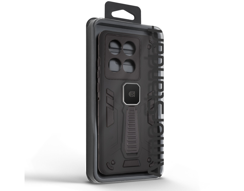 ArmorStandart Proover — це захисний чохол, створений для тих, хто шукає надійність, практичність і продумані деталі. Він забезпечує повноцінний захист смартфона, зберігаючи його функціональність та первісний стан у щоденному використанні. Конструкція поєднує два матеріали: м’який термопластичний поліуретан (TPU) ефективно поглинає удари та запобігає подряпинам, а зовнішній шар із полікарбонату (PC) захищає від механічних пошкоджень і потертостей. Посилені кути мінімізують ризик ушкоджень під час падінь, а блок камери повністю закритий, що забезпечує додатковий захист об’єктивів від подряпин і ударів. На спинці чохла вбудована металева пластина, яка дозволяє використовувати його з магнітними авто-тримачами, забезпечуючи комфорт і безпеку під час керування автомобілем. Чохол оснащений зручною відкидною підставкою, яка дозволяє встановити смартфон горизонтальному або вертикальному положенні для комфортного перегляду відео, відеодзвінків або роботи з контентом. Матове покриття приємне на дотик, стійке до відбитків пальців і подряпин. Особливості:
