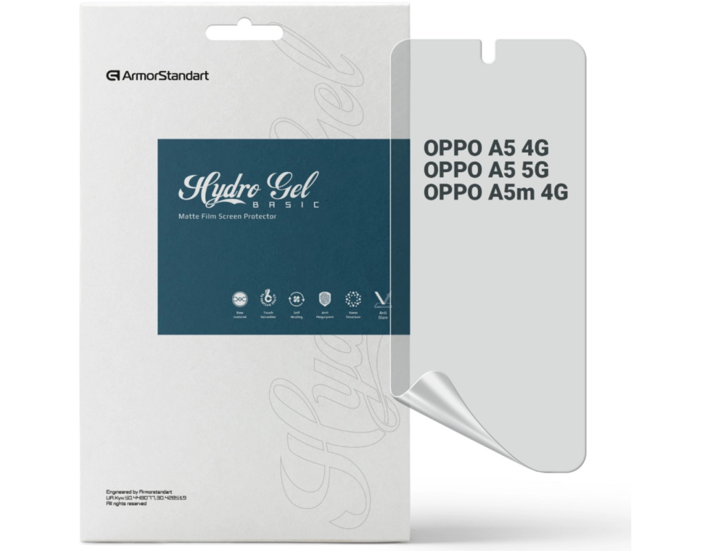 Призначення - для телефону, Вид покриття - матове, гідрогелева, Сумісність з моделями - OPPO A5, OPPO A5m, Підходить для телефонів з діагоналлю - 6.67", Особливості - матова, Кількість в упаковці - 1 шт
