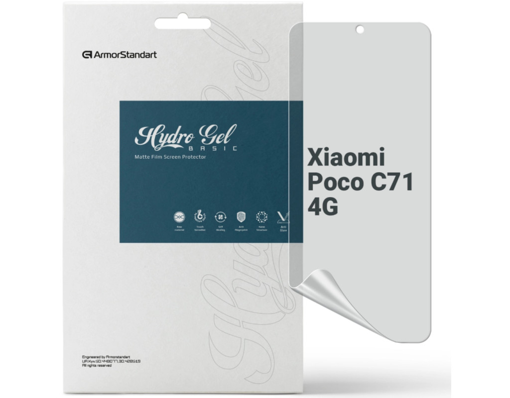 Призначення - для телефону, Вид покриття - матове, гідрогелева, Сумісність з моделями - Xiaomi Poco C71, Підходить для телефонів з діагоналлю - 6.88", Особливості - матова, Кількість в упаковці - 1 шт
