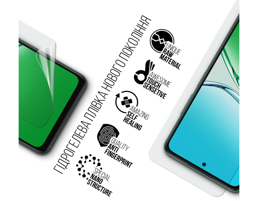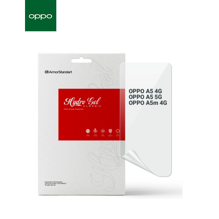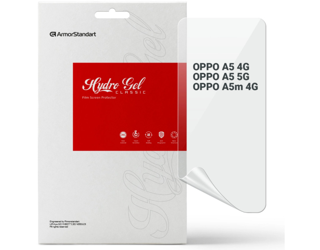 Призначення - для телефону, Вид покриття - глянсове, гідрогелева, Сумісність з моделями - OPPO A5, OPPO A5m, Підходить для телефонів з діагоналлю - 6.67", Кількість в упаковці - 1 шт