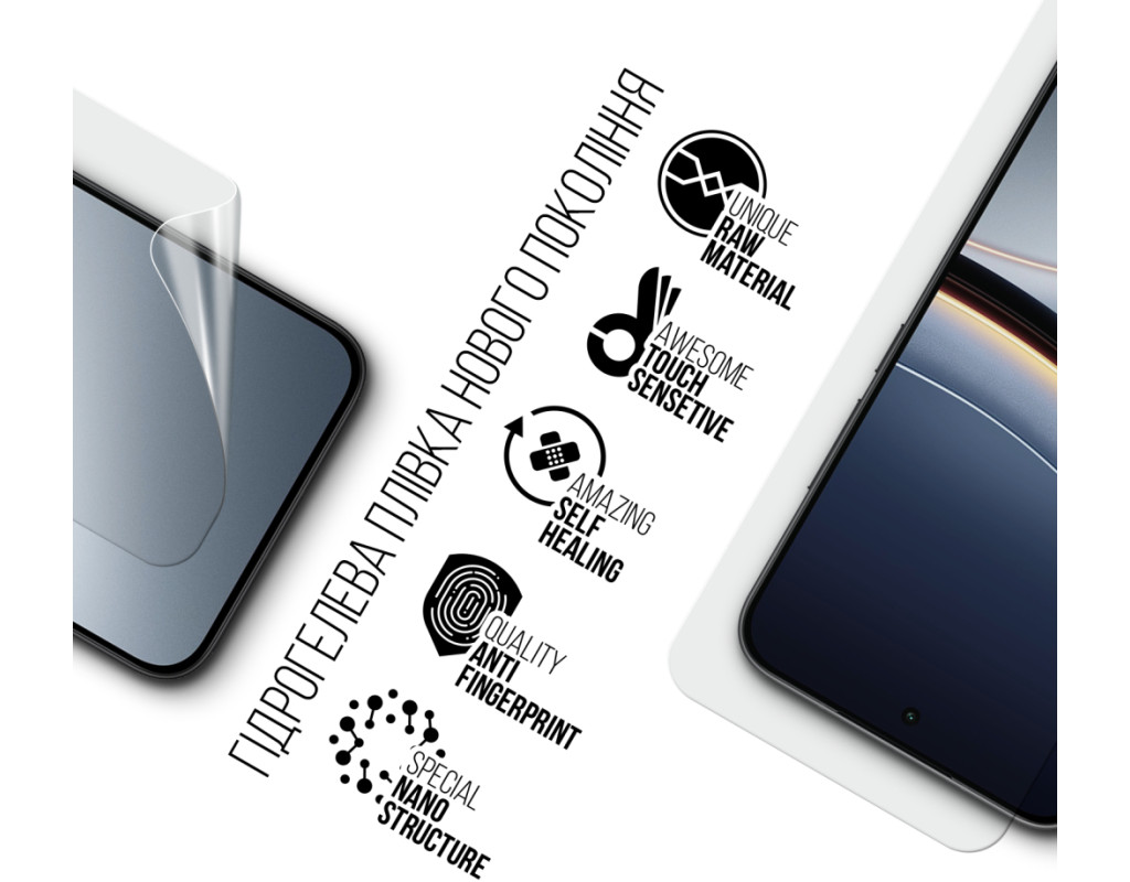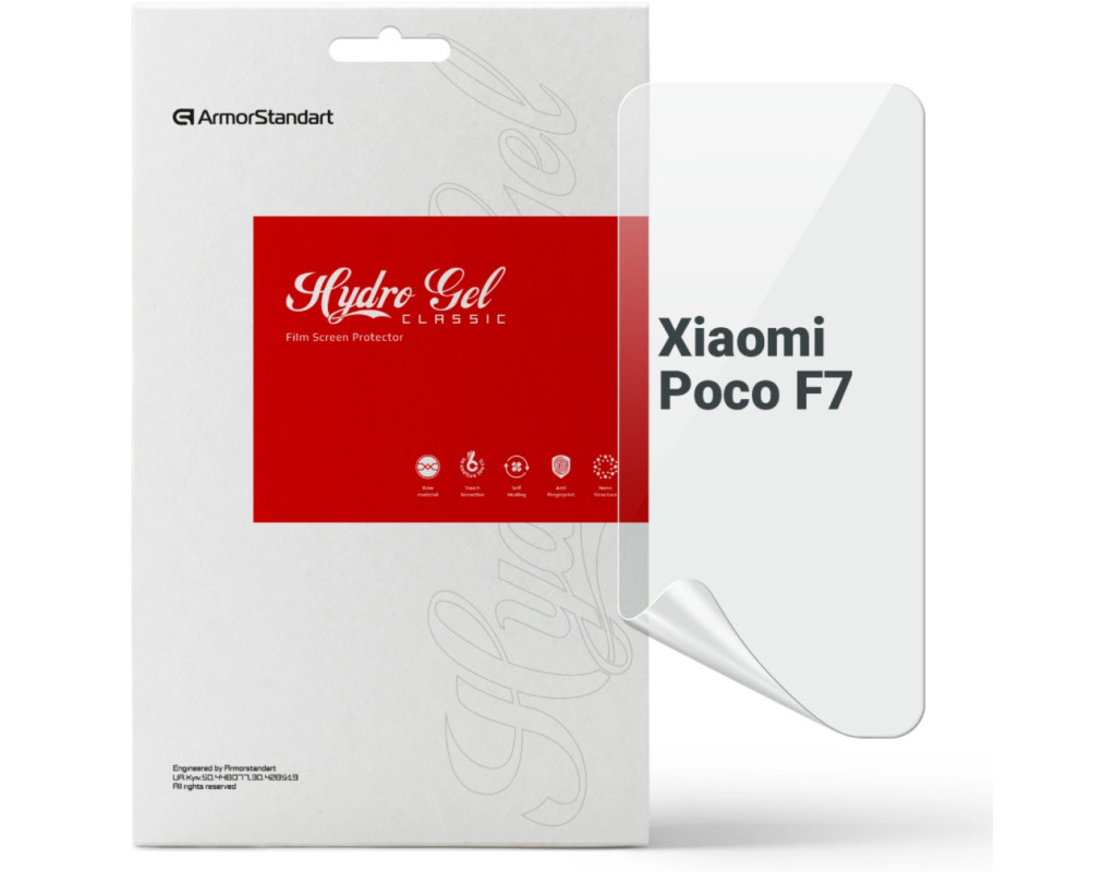 Призначення - для телефону, Вид покриття - глянсове, гідрогелева, Сумісність з моделями - Xiaomi Poco F7, Підходить для телефонів з діагоналлю - 6.67", Кількість в упаковці - 1 шт