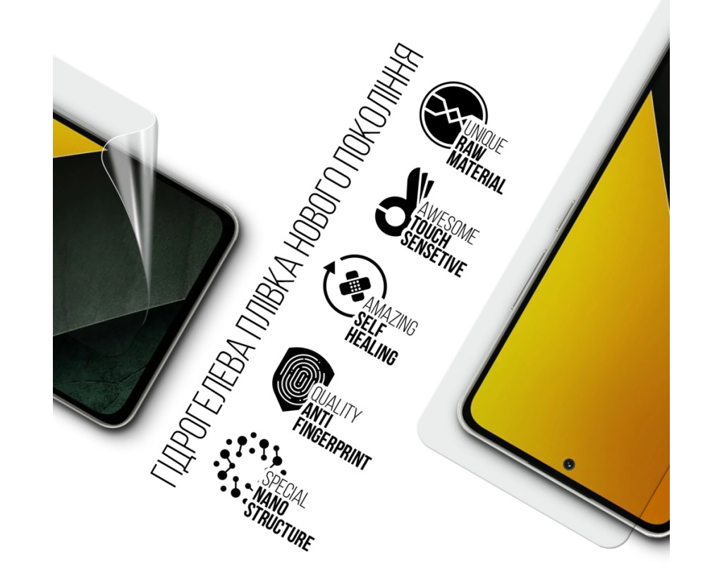 Призначення - для телефону, Вид покриття - глянсове, гідрогелева, Сумісність з моделями - Xiaomi Poco M7 5G, Підходить для телефонів з діагоналлю - 6.88", Кількість в упаковці - 1 шт