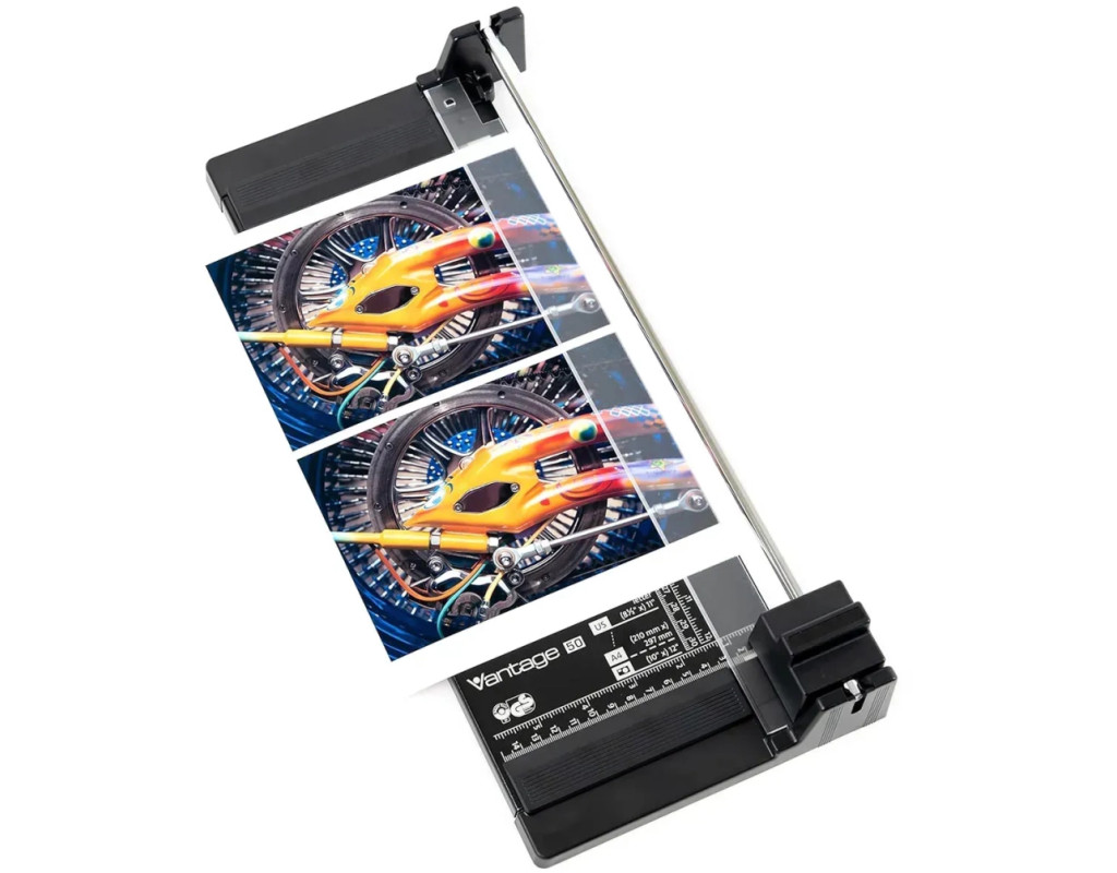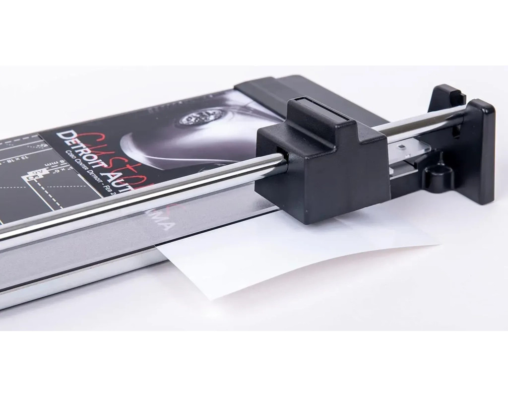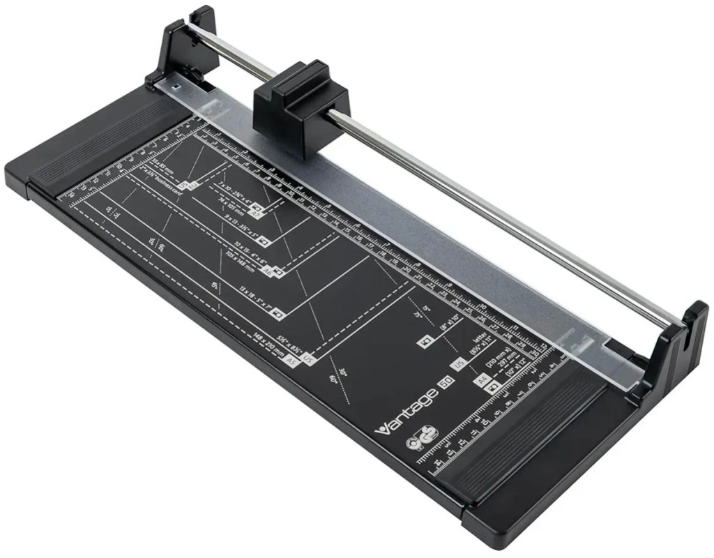 | Різак для виконання невеликих обсягів робіт по порізці паперу. Довжина різу - 320 мм. Товщина стопи - 0,5 мм. На столі нанесена розмітка стандартних форматів паперу с мм-шкалою, включаючи фото розмір, а також мітки для різу під кутом. Дві напрямні упору для точності при порізці і зручності різання. Дисковий ніж цього різака при різанні щільно притискається до контрлеза, забезпечує процес самозаточування. Можливість різу в обох напрямках вздовж направляючої. Прозора пластикова напрямна щільно притискає папір під час руху ножа, забезпечує автопритиск, точне позиціонування і можливість спостерігати лінію різу в момент розрізання матеріалів. Металева основа. Прогумовані ніжки запобігають зміщенню різака при роботі. TM Dahle / Novus (Німеччина) - преміум-клас, різальне обладнання, техніка для офісу та офісні аксесуари. |