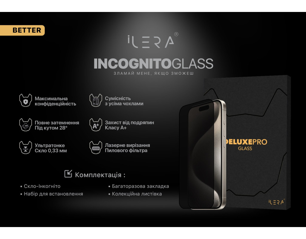Скло захисне iLera DeLuxe Incognito iPhone 16 Pro (ILINDL16PR)