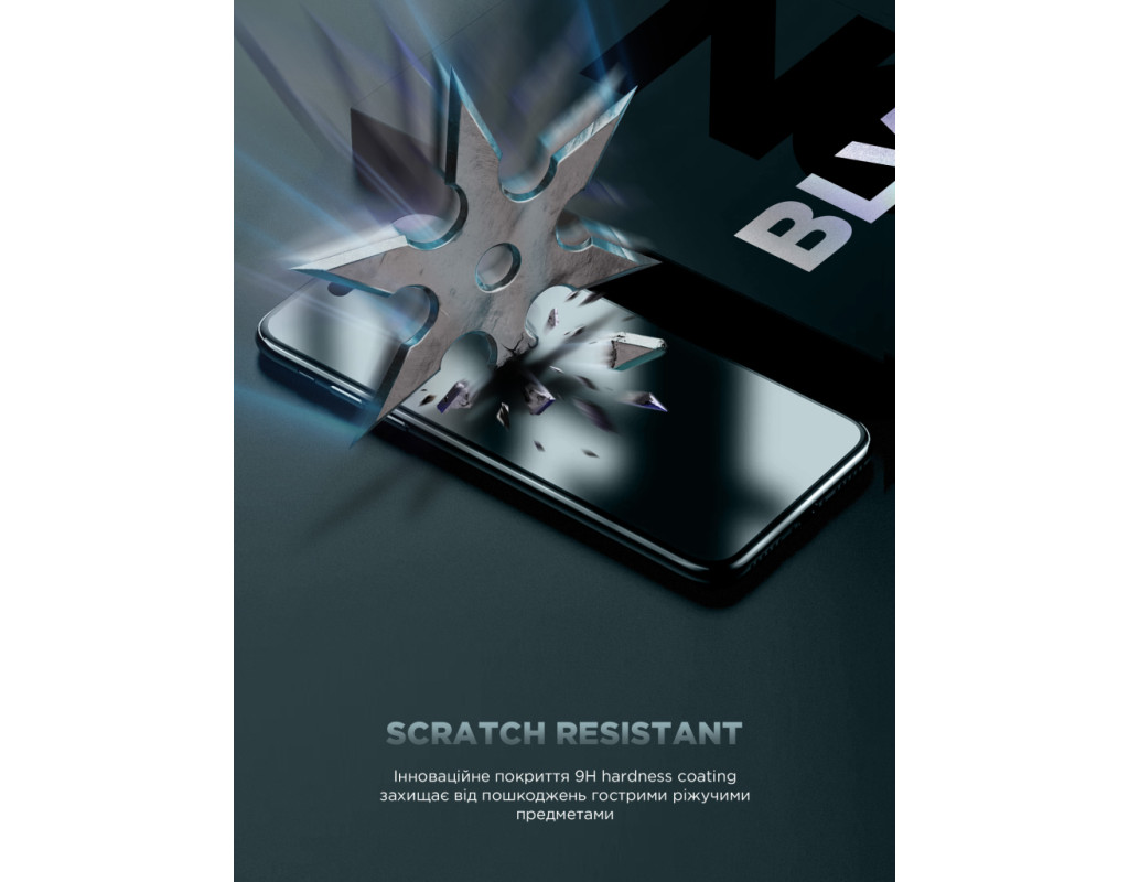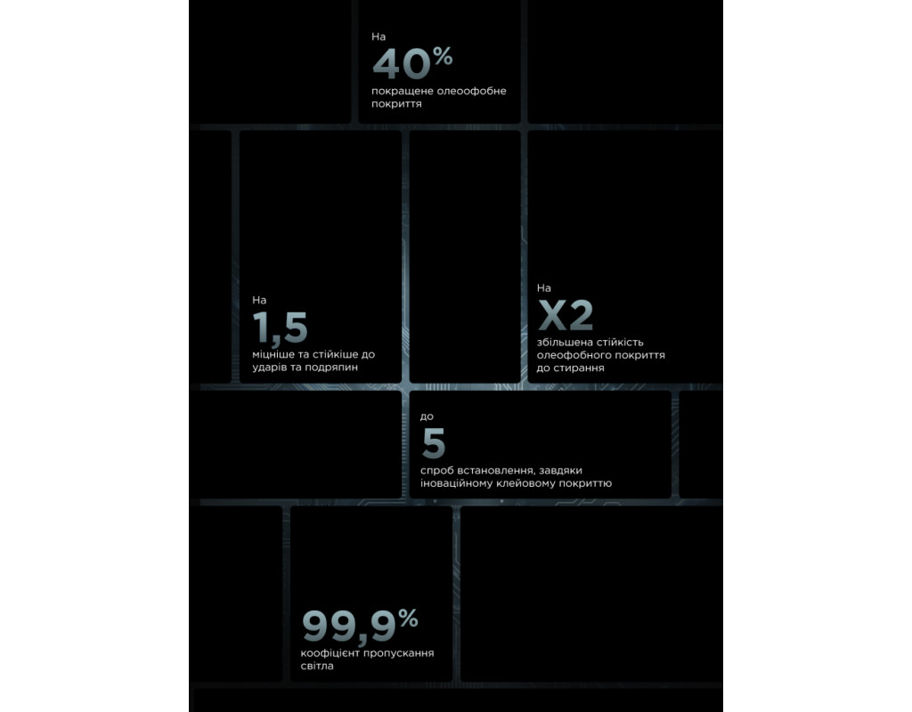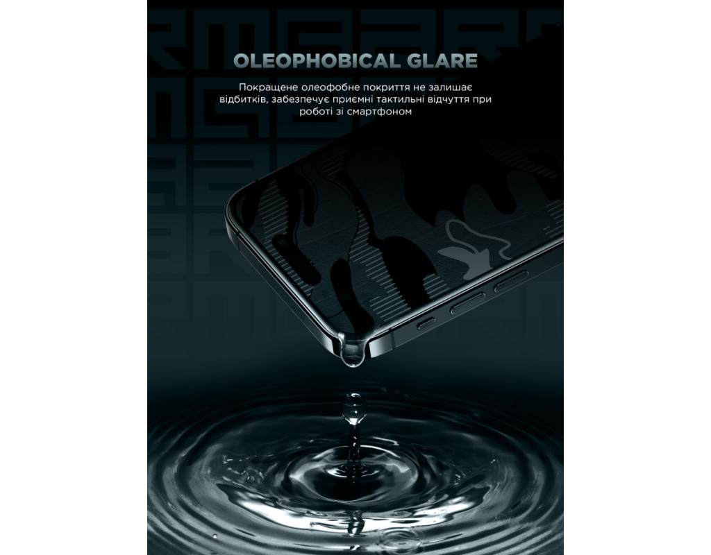 Захисне скло має олеофобне покриття AF преміумкласу, що запобігає відбиткам пальців та забрудненню.