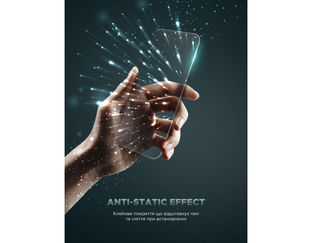 Застосований Antistatic клей забезпечує міцну адгезію до екрана вашого смартфона, забезпечуючи надійний захист. Antistatic властивість, завдяки цьому не притягує пил під час встановлення скла. Це дозволяє легко встановити скло без бульбашок повітря.