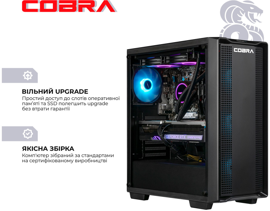 | COBRA поєднує в собі високу продуктивність, потужність і сучасні технології. Ультра графіка Топові відеокарти забезпечать максимальну, і безкомпромісну продуктивність в самих вимогливих іграх і додатках. Ігри в ультра настройках графіки - тепер ти зможеш побачити світ сучасних ігор очима розробників, оцінити їх так, як вони були задумані, а не миритися і підлаштовуватися. Топові процесори Старша лінійка процесорів - верх продуктивності і приємний запас для комфортної роботи з великими масивами даних, складними іграми, обробкою великих обсягів мульти-медіа контенту. Безпрецедентна потужність, і малий час відгуку разом з вбудованими засобами безпеки дозволяють працювати, грати і створювати контент так швидко і так ефективно, як ви захочете. Абсолютна міць твого ПК від COBRA Ігрові комп`ютери COBRA з максимальною конфігурацією зібрані спеціально для самих просунутих користувачів і вимогливих до якості графіки геймерів. Дана лінійка дозволить насолодитися ультра налаштуваннями графіки і максимальною роздільною здатністю в усіх сучасних іграх, зберігаючи максимально доступні показники FPS. Кращого просто не існує! ПК COBRA збираються на базі комплектуючих визнаних світових лідерів, таких як Intel, AMD, ASUS, MSI, Gigabyte, і ін. Професійна збірка комп`ютера COBRA забезпечить оптимальний повітряний потік всередині корпусу, а значить і відмінне охолодження всіх компонентів ПК. |