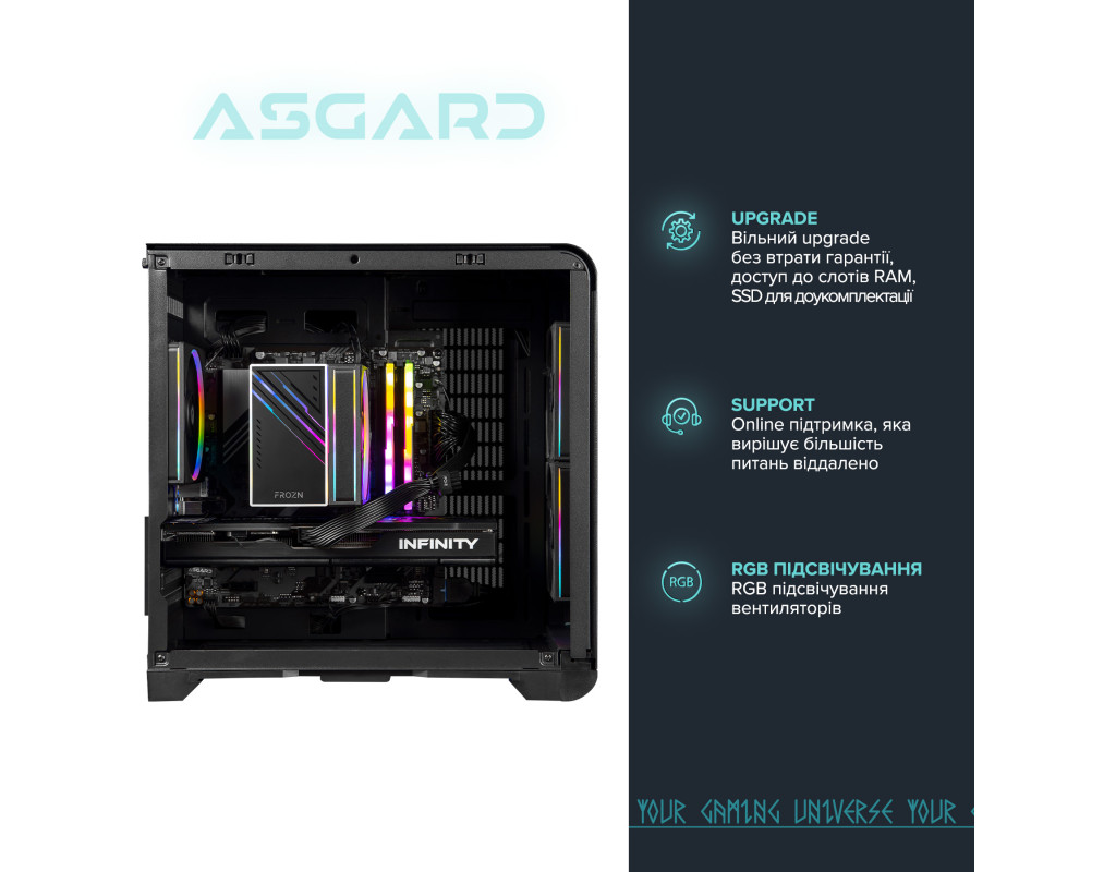 Український виробник ASGARD - це онлайн лабораторія по створенню неповторних кастомізованих ігрових персональних комп’ютерів.