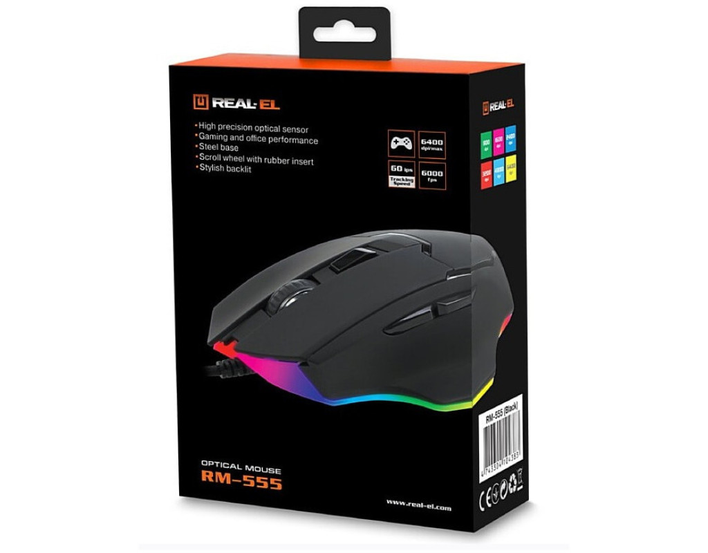 | Мишка REAL-EL RM-555 USB Black — це класична дротова мишка, яка поєднує високоякісну конструкцію та передові технології для максимального комфорту під час використання. Вона підключається через USB інтерфейс, що забезпечує надійну та стабільну передачу даних. Завдяки оптичному датчику, REAL-EL RM-555 пропонує роздільну здатність до 6400 dpi, що дозволяє налаштовувати чутливість в залежності від потреб, будь то точна робота з графікою або інтенсивна гра. Додатковий шар космічності цій мишці надає вбудоване підсвічування, яке не тільки підкреслює стильний чорний колір пристрою, а й додає вашому робочому місцю естетичний вигляд. П'ять кнопок, включаючи дві навігаційні клавіші для швидкого доступу «вперед» і «назад», дарують легкість керування у браузері та файлах. Колесо прокрутки забезпечує гладке та швидке перегортання сторінок, а перемикач роздільної здатності дозволяє миттєво змінювати DPI для зручної адаптації до різних завдань. Завдяки довжині кабеля 1.8 метра, у вас є достатньо простору для оптимального розташування миші без зайвих обмежень. Перевага REAL-EL RM-555 полягає в її універсальності: вона підходить як для роботи, так і для ігор, адже висока швидкість роботи та надійна конструкція дозволяють їй впевнено справлятися з будь-яким завданням. Познайомтеся з бездоганним поєднанням стилю та ефективності, яке підніме ваш комп'ютерний досвід на новий рівень. Обравши мишку REAL-EL RM-555, ви інвестуєте у якість та функціональність, що надійно служитиме вам тривалий час, забезпечуючи задоволення і якісну продуктивність як в роботі, так і в розважальних цілях. Це справжня знахідка для тих, хто цінує сучасний технологічний дизайн з оптимальним набором функцій! |