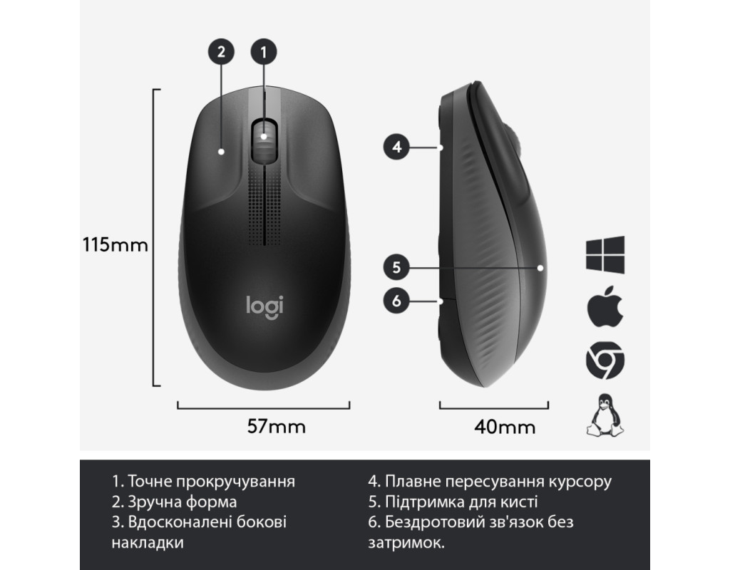 | Повнорозмірна бездротова миша Logitech M190 Charcoal (910-005905) — ідеальне рішення для тих, хто цінує комфорт і ефективність у роботі. Ця миша поєднує у собі якість, сучасний дизайн і зручність використання, роблячи її ідеальним вибором для роботи вдома або в офісі. Завдяки класичній формі та інтуїтивно зрозумілій структурі, вона стане надійним помічником у повсякденних завданнях. Комфорт у кожному дотику — це не просто слова, а основа дизайну Logitech M190. Її контурна форма зручна в руці й спеціально розроблена, щоб забезпечити підтримку природного вигину долоні. Зубчасті кнопки розташовані так, щоб ви могли швидко й без зусиль здійснювати натиснення, а додаткова опора для долоні допомагає зберегти руки в комфорті протягом усього робочого дня. Важливою перевагою є те, що миша підходить як для праворуких, так і для ліворуких користувачів. Бездротовий зв'язок без затримок — одна з основних переваг цієї моделі. За допомогою USB адаптера на 2.4 ГГц, що забезпечує надійний і стабільний зв'язок, ви можете працювати з мишкою на відстані до 10 метрів. Вільне переміщення без обмежень і переривань тепер стало реальністю, роблячи вашу робочу зону акуратнішою, без зайвих проводів. Ще однією значущою особливістю є оптичний датчик з максимальною роздільною здатністю 1000 dpi, що забезпечує точне й плавне керування курсором. Це робить мишку чудовим вибором для роботи з документацією, графічними додатками та інтернет-серфінгу. Потужність і ефективність. Завдяки живленню від однієї батареї типу AA, миша може працювати до 18 місяців без необхідності її заміни. Це досягається завдяки енергоощадному режиму, який автоматично активується, коли пристрій не використовується. Вибирайте темно-сірий відтінок, який підкреслює елегантність і сучасність вашого робочого простору, та насолоджуйтеся її простотою і витонченістю. Розміри Logitech M190 — 115.4 x 66.1 x 40.3 мм, що гарантує її компактність та зручність у використанні навіть у дорозі, якщо ви використовуєте її з ноутбуком. Обираючи Logitech M190, ви отримуєте надійного помічника, який забезпечить вам максимальну зручність і функціональність щодня, піднімаючи ваш робочий процес на новий рівень ефективності. |
