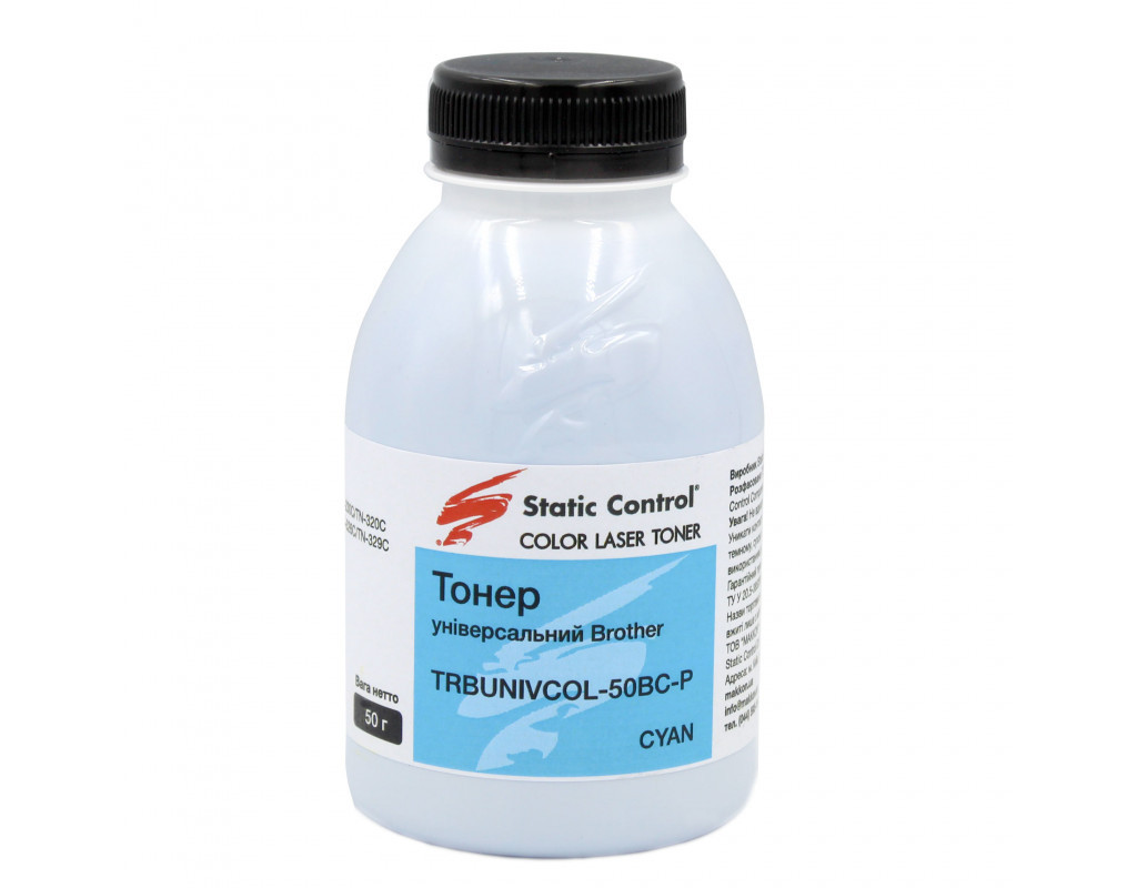 Тонер Brother 50г cyan, фасовка Static Control (TRBUNIVCOL-50BC-P)