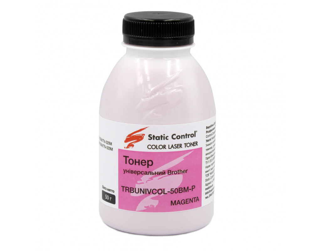 Тонер Brother 50г magenta, фасовка Static Control (TRBUNIVCOL-50BM-P)