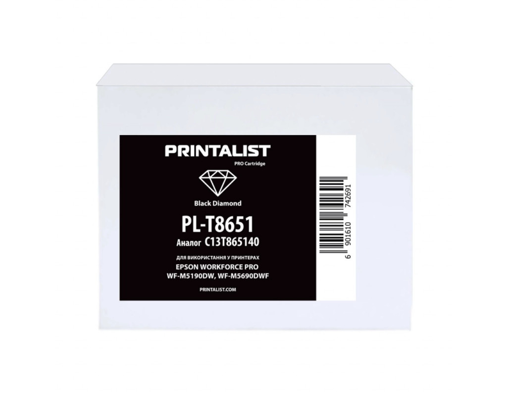 Картридж Printalist Epson WorkForce Pro WF-M5690/WF-M5190/ C13T865140 Black (PL-T8651)
