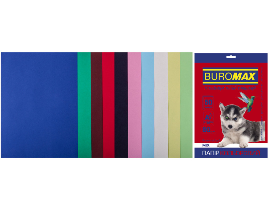 Папір Buromax А4, 80g, DARK+PASTEL, 10colors, 50sh (BM.27211150-99)