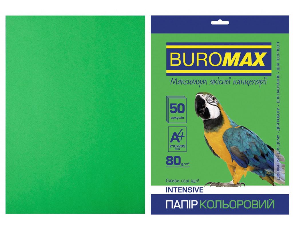 Папір Buromax А4, 80g, INTENSIVE green, 50sh (BM.2721350-04)