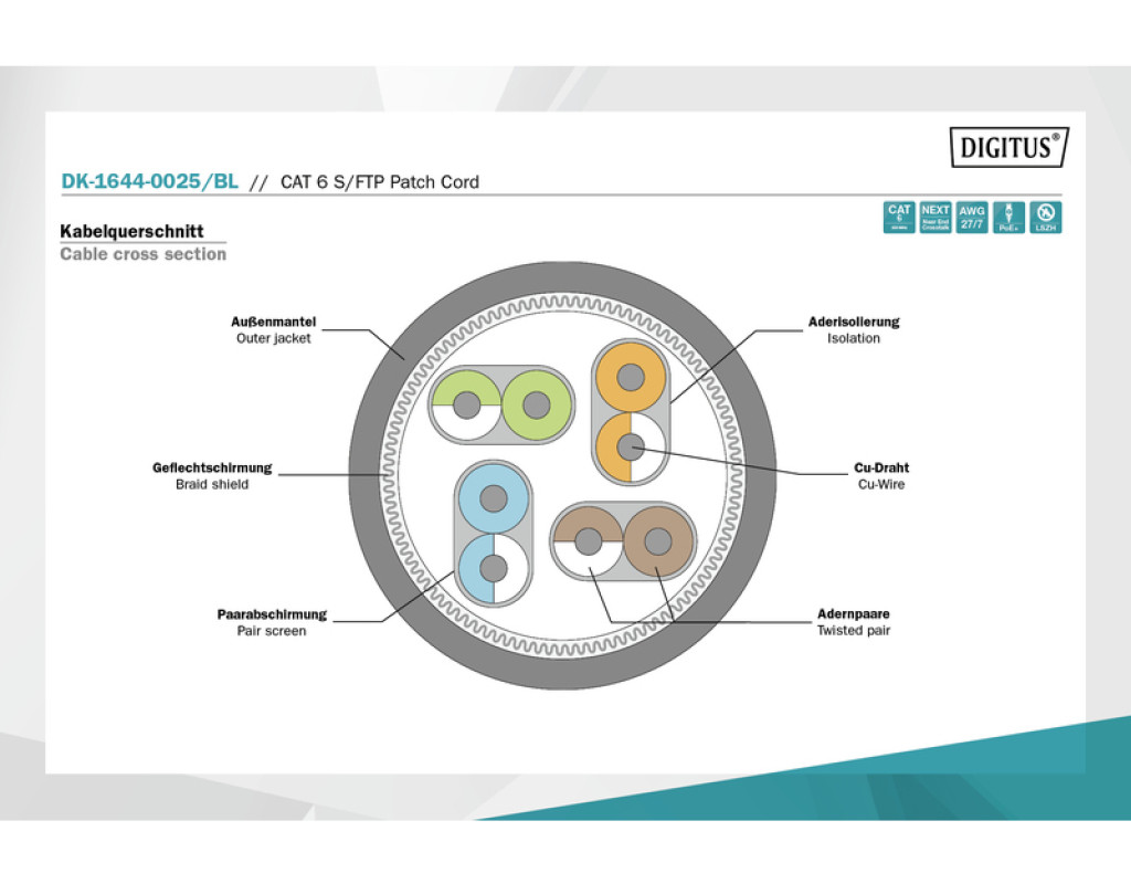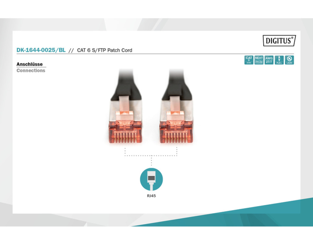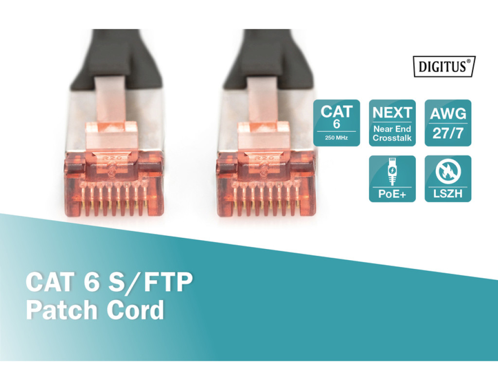 Патч-корд 0.25м, CAT 6 S-FTP, AWG 27/7, LSZH, Black Digitus (DK-1644-0025/BL)