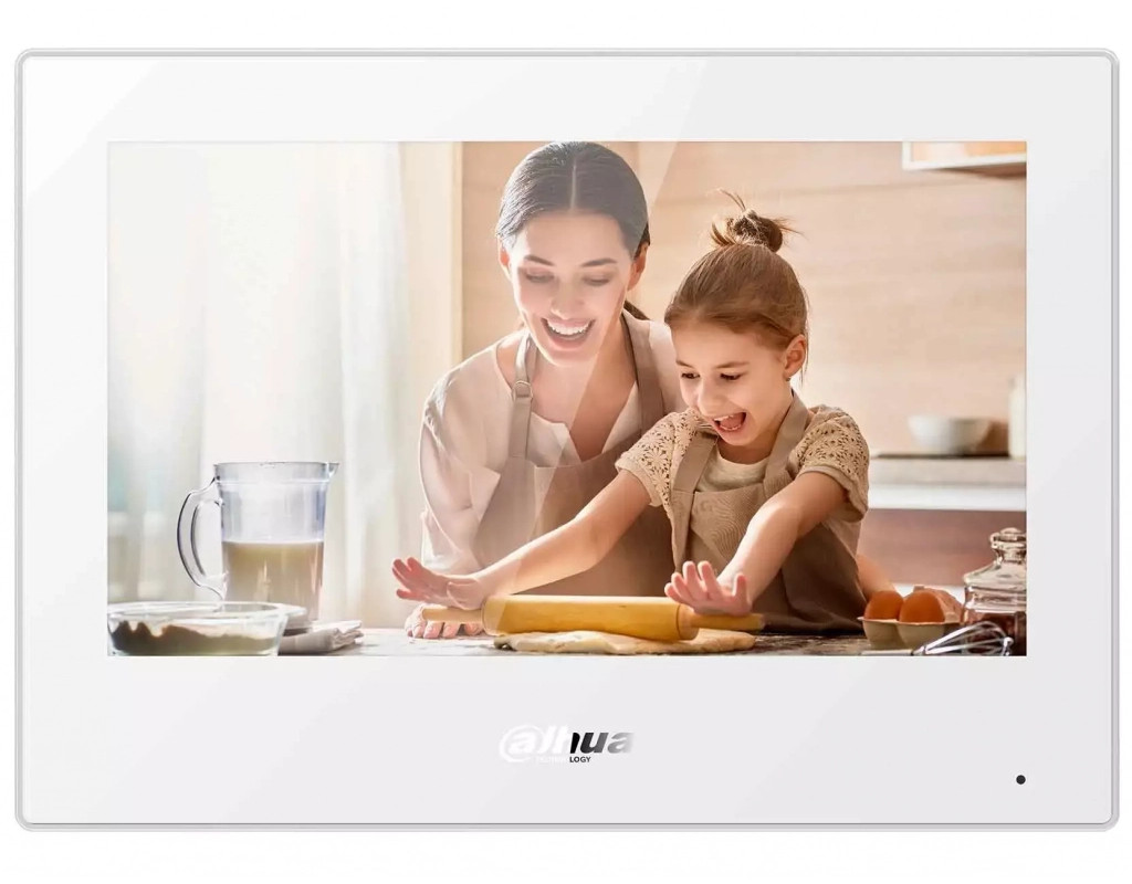 7" сенсорний IP-відеодомофон. Підтримка під'єднання додаткових викличних панелей і моніторів. Підтримка під'єднання 8 датчиків тривоги або побутових сенсорів. Підтримка SD-карт пам'яті до 256 Гб, записування відео та фото. Wi-Fi. DC 12В, PoE (802.3af). Розмір: 190х135х26 мм; Колір: білий Особливості: