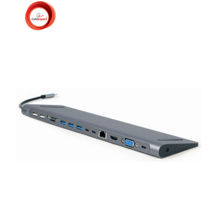 Концентратор Cablexpert USB-C 9-in-1 (Hub/HDMI/VGA/PD/card-reader/lan/audio) (A-CM-COMBO9-01)
