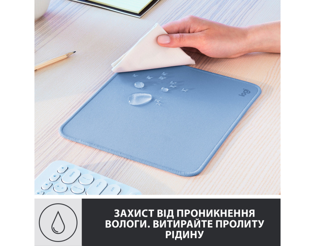 Захист від проникнення вологи Килимок Logitech Mouse Pad має вологозахищене покриття, що дає змогу йому не вбирати випадково розлиту рідину. Ви можете просто витерти її вологою серветкою.
