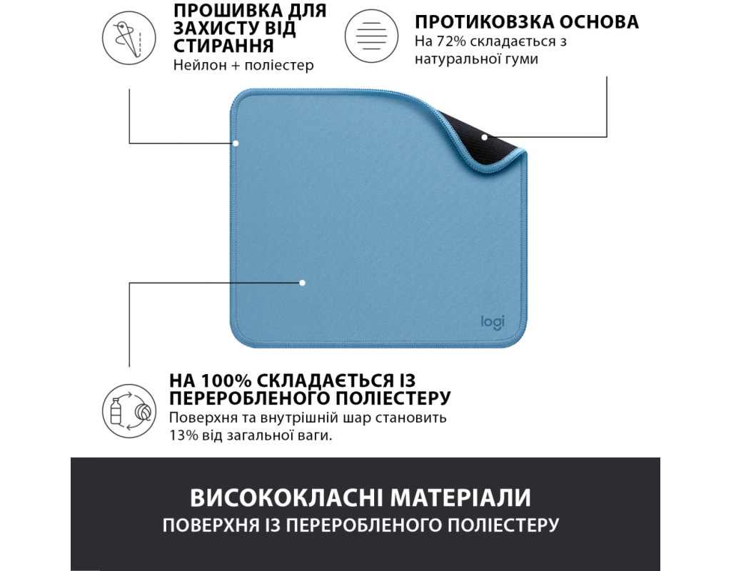 Килимок для миші Logitech Mouse Pad — серія Studio М'який килимок для миші, що забезпечує комфортне ковзання без жодних зусиль.