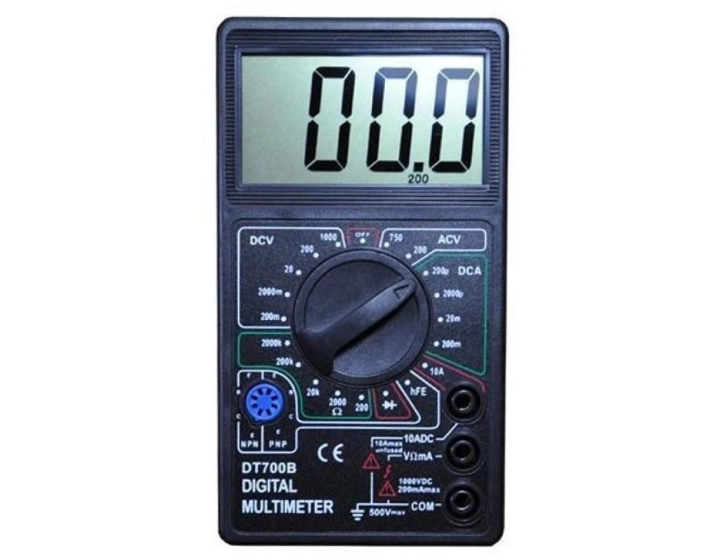 ємність (С), напруга (V), опір (R), перевірка батареї, струм (А), тестування транзисторів, частота (F) |