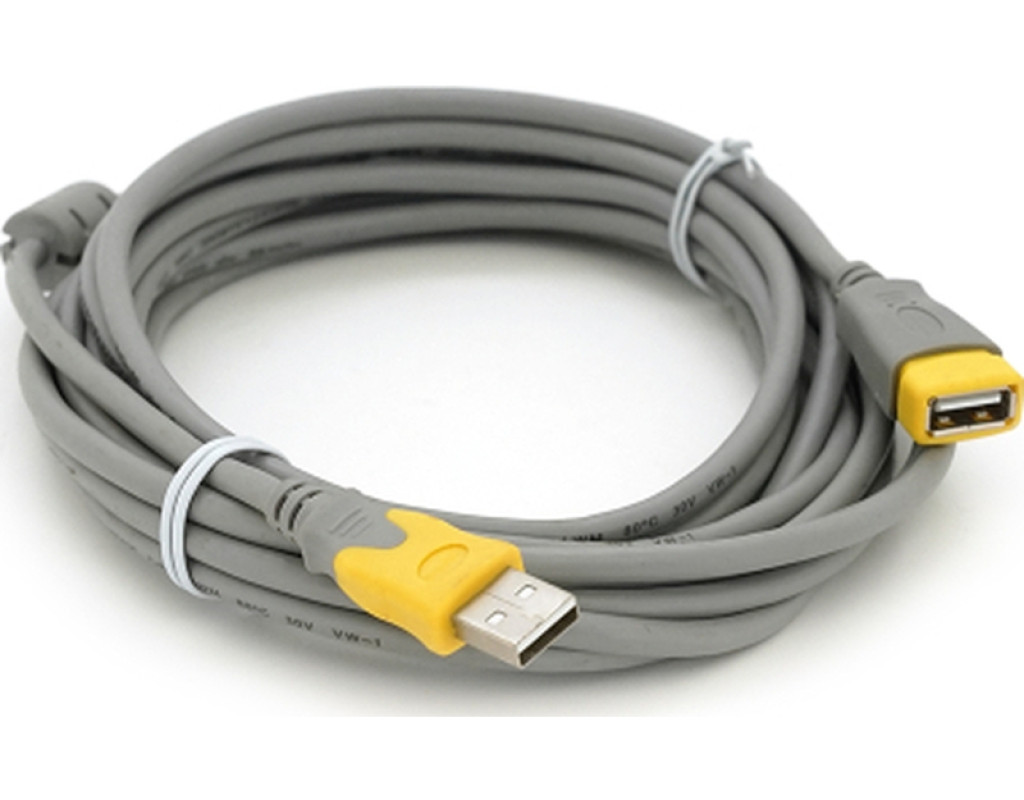 Характеристики: - Тип кабелю: подовжувач USB 2.0 - Конектори: тип AM (male)/AF (female) - Довжина кабелю: 5.0 метрів - Колір: сірий із жовтими елементами - Матеріал оболонки: ПВХ (гнучкий, зносостійкий) - Перетин провідників: 28 AWG (для даних), 20 AWG (для живлення) - Підтримка стандарту: USB 2.0 - Швидкість передачі: до 480 Мбіт/с - Максимальний струм: 500 мА (за специфікацією USB 2.0) - Напруга: 5 В ±5% - Ферритовий фільтр: 1 кільце (пригнічення високочастотних перешкод) Сумісність: - Комп`ютери та ноутбуки - Принтери, сканери, МФУ - Зовнішні жорсткі диски (додаткове харчування) - Заряджання мобільних пристроїв - Температура експлуатації: від 0 ° C до +40 ° C - Додаткові особливості: - Стійкість до перегинів - Захист від перешкод - Довговічні контакти