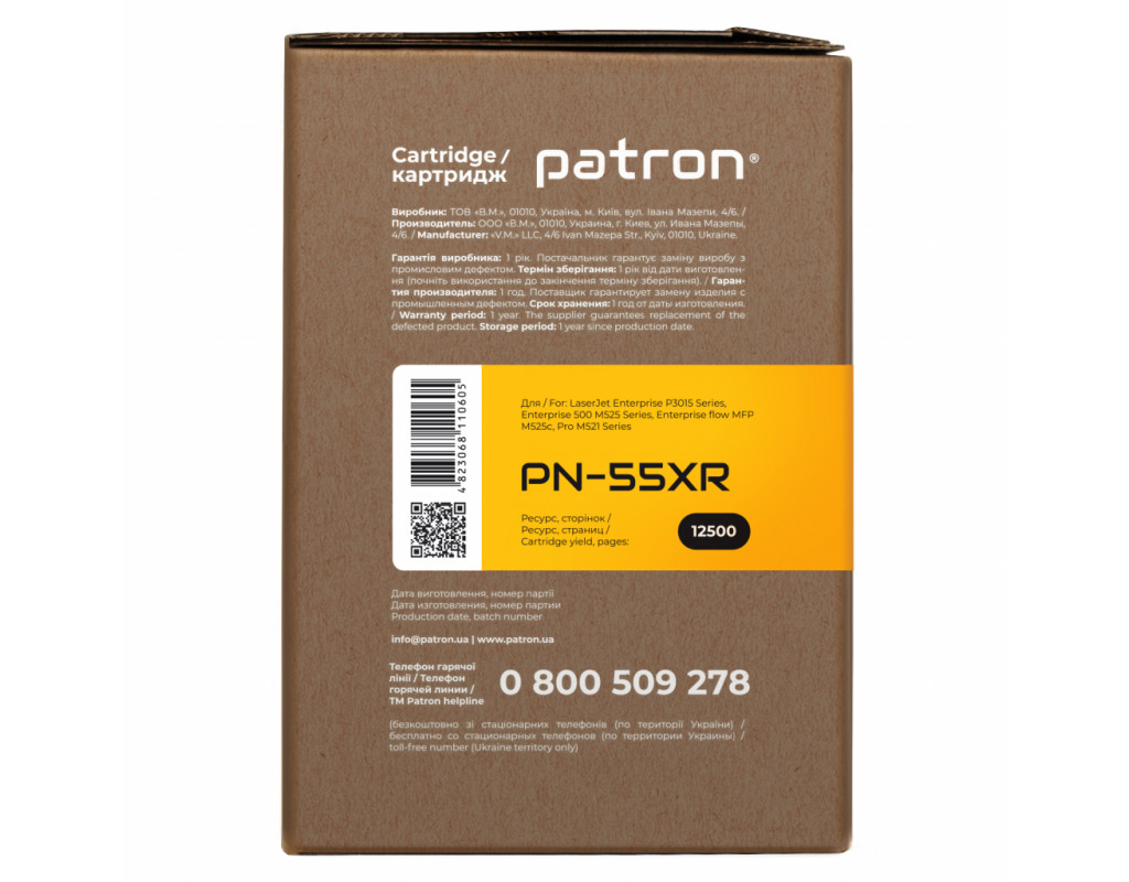 Картриджі PATRON – продукція, яка розроблена разом з обладнанням як єдине ціле для досягнення найкращих результатів друку. Жорсткий контроль якості забезпечується на усіх етапах виробництва. Висока якість друку досягається завдяки строгій відповідності необхідних вимог з фізичного розміру часток, хімічному складу, температурі плавлення і електростатичним властивостям тонера.