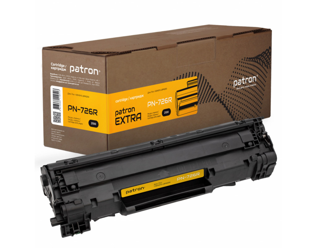 | Картридж PATRON CANON 726 Extra (PN-726R) для використання в монохромних лазерних друкуючих пристроях. Є найвигіднішим рішенням для користувачів, які багато друкують. Виготовлений з використанням корпусу оригінального картриджа. Рекомендований для багаторазової перезаправлення завдяки міцному корпусу і новим комплектуючим, які забезпечують довгострокову екстра-економію. Якість друку і ресурс тестуються за міжнародним стандартом STMC. Тестовий відбиток вкладається в пакувальну коробку картриджа. |