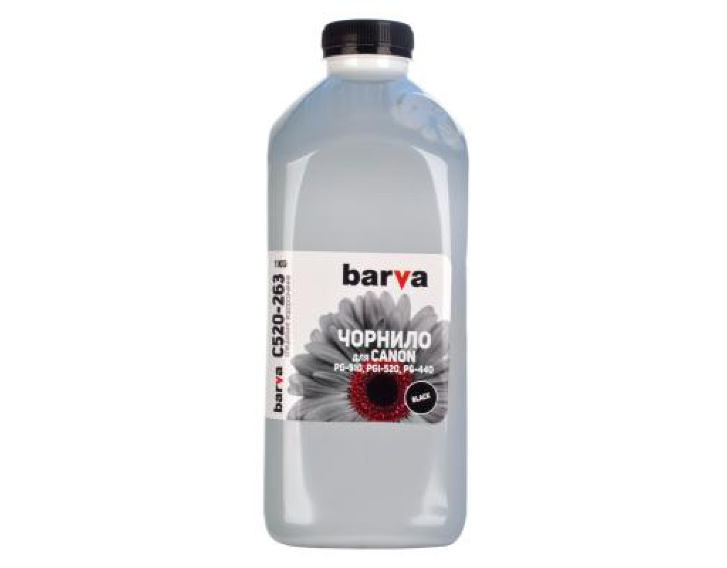 BARVA CANON PGI-520/PG-510 BLACK 1кг (C520-263) - якісне чорнило, яке відрізняється високою світло - і водостійкістю, широкою кольоровою гамою і хорошою чіткістю одержуваних відбитків. Зображення надовго збереже яскравість, завдяки впровадженню у виробництво чорнил новітніх наукових розробок.