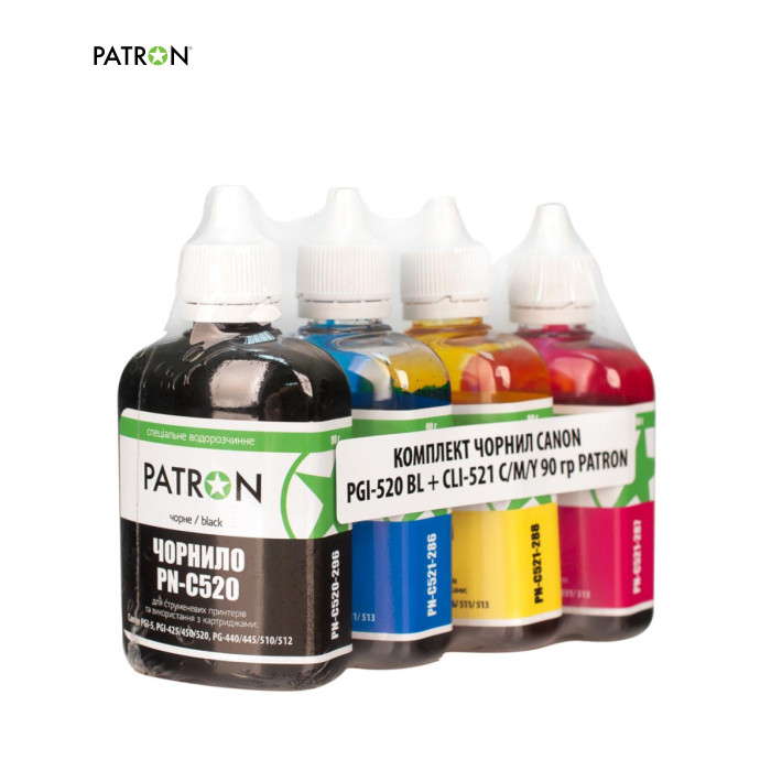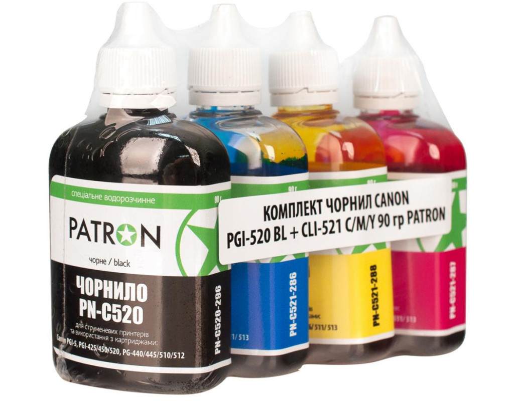| Чорнило PATRON CANON PGI-520 BL + CLI-521 C/M/Y (CPGI520-090-MP) являє собою якісне чорнило для заправки картриджів та СНПЧ для струменевих принтерів. Серед основних конкурентних переваг чорнил PATRON: гарна передача кольорів, чіткість зображення, волого - і світлостійкість, бюджетна ціна. Чорнила PATRON менше від інших схильні до вицвітання завдяки напівпрозорому фірмовому флакону з поліпропілену. Повну герметичність флаконів при транспортуванні гарантує індукційна запайка шийки. |