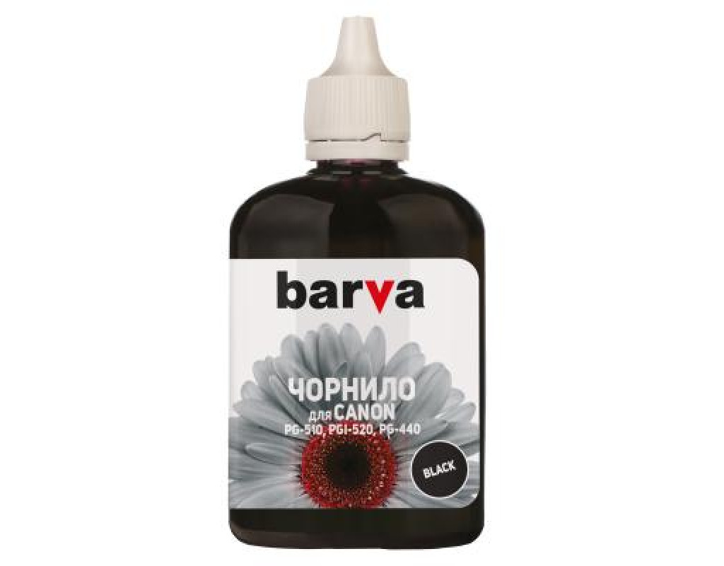 BARVA CANON PGI-520/PG-510 90г BLACK (C520-296) - якісне чорнило, яке відрізняється високою світло - і водостійкістю, широкою кольоровою гамою і хорошою чіткістю одержуваних відбитків. Зображення надовго збереже яскравість, завдяки впровадженню у виробництво чорнил новітніх наукових розробок.