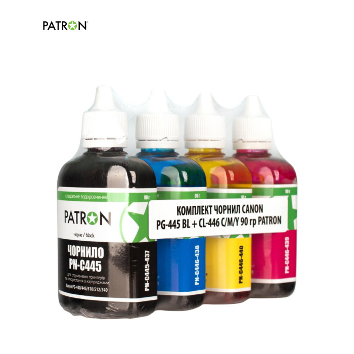 | Чорнило PATRON CANON PG-445 BL + CL-446 C/M/Y (CPG445-090-MP) являє собою якісне чорнило для заправки картриджів та СНПЧ для струменевих принтерів. Серед основних конкурентних переваг чорнил PATRON: гарна передача кольорів, чіткість зображення, волого - і світлостійкість, бюджетна ціна. При використанні СНПЧ (системи неперервної подачі чорнила), а також при перезаправці картриджів потрібні чорнила. Система неперервної подачі чорнила вирішує проблему економного друку і робить купівлю струменевого принтера економічно виправданою. Все, що Вам необхідно - це періодично поповнювати чорнило в донорах, вартість яких значно менша, ніж вартість повного набору картриджів. |