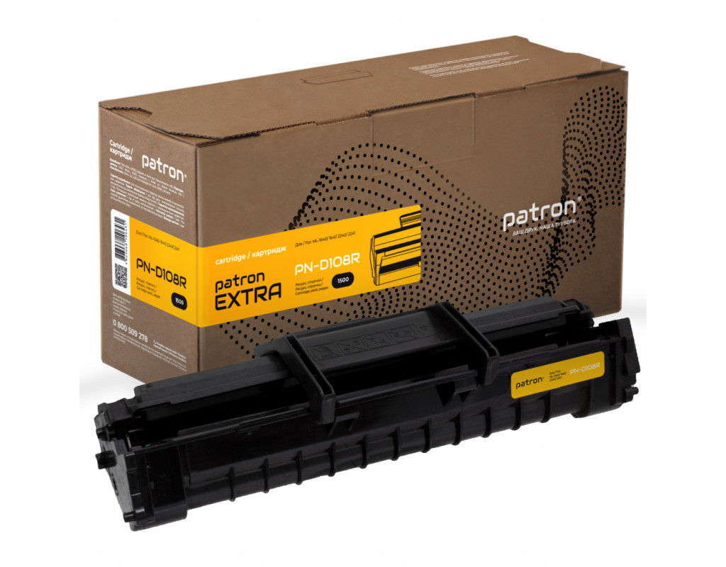 | Картридж для лазерних прінтерів PATRON SAMSUNG ML-1640/1641/2240/2241 (MLT-D108S) Extra (CT-SAM-MLT-D108S-PNR) strong> Ресурс катридж - 1500 аркушів, при 5% заповненні. Якість друку и ресурс тестуються за міжнароднім стандартом STMC. Витрати поклади від того, наскількі сторінка відзначився. На стандартній сторінці тексту площа под чорнілом складає 5%. Це стандартна характеристика заповненості тонером поверхні паперу, и норми витрати тонера (ресурс картриджа) наводить самє по ній. Для прінтерів SAMSUNG ML-1640/1641/2240/2241 |