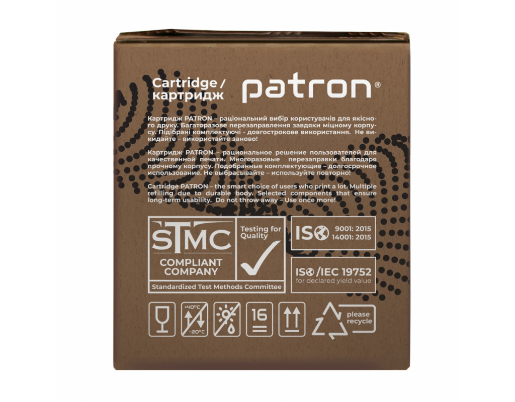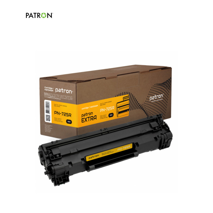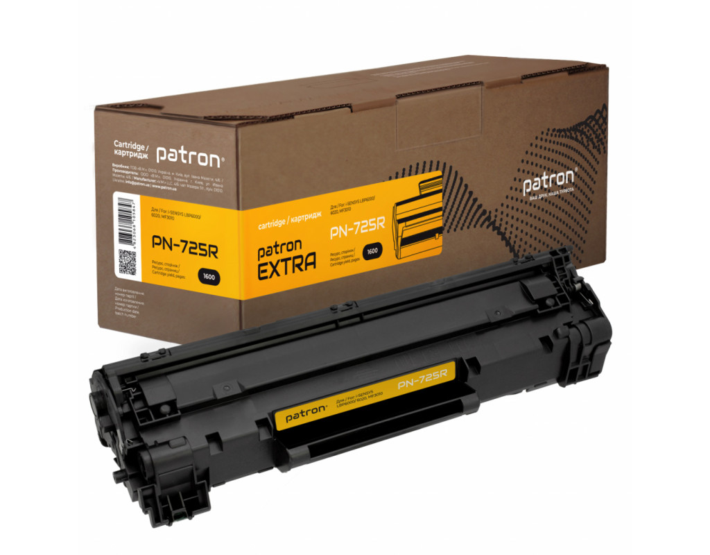 | Картридж PATRON CANON 725 (PN-725R) Extra (CT-CAN-725-PN-R). Ресурс катриджа - 1600 листів, при 5% заповненні. Якість друку і ресурс тестуються за міжнародним стандартом STMC. Витрата залежить від того, наскільки сторінка заповнена. На стандартній сторінці тексту площа під чорнилом складає 5%. Це стандартна характеристика заповнення тонером поверхні паперу, і норми витрати тонера (ресурс картріджа) приводяться саме по ній. Сумісні моделі з PATRON CANON 725 (PN-725R) Extra (CT-CAN-725-PN-R): Canon i-SENSYS LBP6000 |