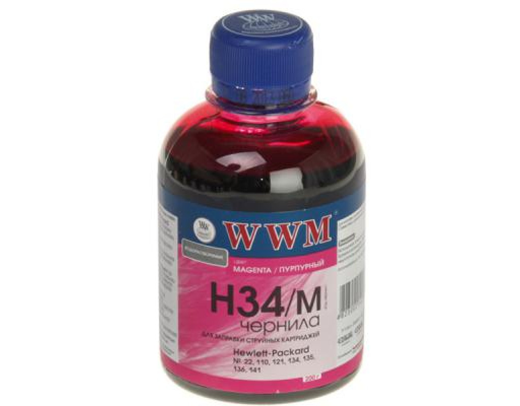 | WWM HP № 22/134/135/136 (8766/9361/9363) magenta (H34M) - чорнило для системи безперервної подачі чорнила, струменевих принтерів та МФУ. При використанні СНПЧ, а також при перезаправці картріджів вимагається чорнило, яке може бути пігментним або водорозчинним. Перевага пігментного чорнила в тому, що вони більш за стійкі до світла та води, не розпливаються при намоканні. Перевага використання водорозчинного чорнила в істотній економії грошових коштів в порівнянні з пігментними та в зручності використання, відсутності ризику засихання в друкуючій голівці. Серед основних конкурентних переваг чорнил WWM HP № 22/134/135/136 (8766/9361/9363) magenta (H34M): гарна передача кольорів, чіткість зображення, волого- і світлостійкість, ощадлива ціна. |