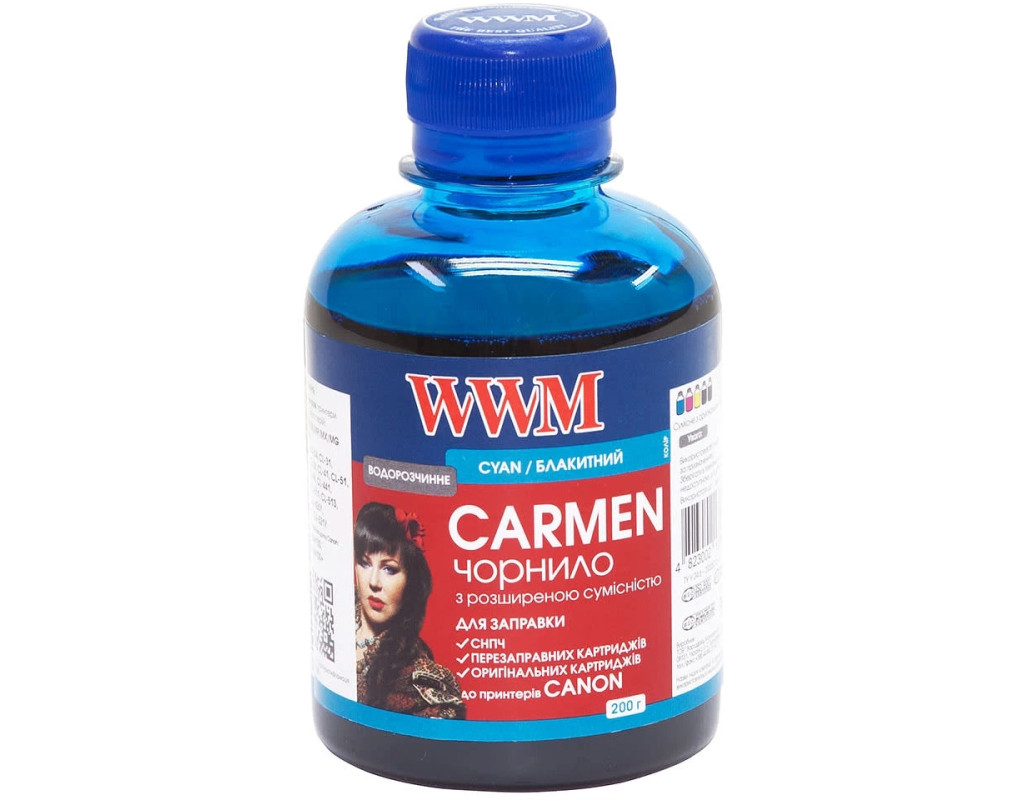 | Чорнило WWM CANON UNIVERSAL CARMEN Cyan (CU/C) - чорнило для системи безперервної подачі чорнила, струменевих принтерів та МФУ. При використанні СНПЧ, а також при перезаправці картріджів вимагається чорнило, яке може бути пігментним або водорозчинним. Перевага пігментного чорнила в тому, що вони більш за стійкі до світла та води, не розпливаються при намоканні. Перевага використання водорозчинного чорнила в істотній економії грошових коштів в порівнянні з пігментними та в зручності використання, відсутності ризику засихання в друкуючій голівці. Серед основних конкурентних переваг чорнил WWM CANON UNIVERSAL CARMEN Cyan (CU/C): гарна передача кольорів, чіткість зображення, волого- і світлостійкість, ощадлива ціна. |