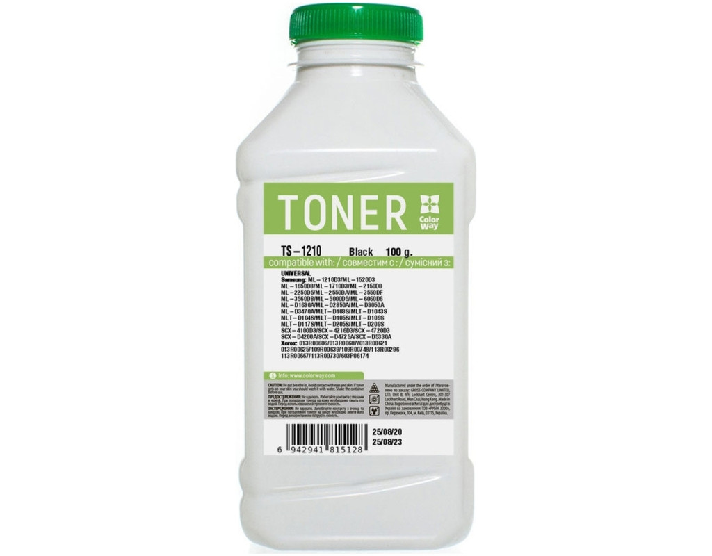 | Асортимент тонерів ColorWay підходить до усіх різновидів картріджів для популярних моделей принтерів і копірів. Тонер SAMSUNG ML-1210/4500 ColorWayвідрізняється не лише високою якістю, завдяки вдосконаленій технології виробництва, але і зручною упаковкою та особливим дизайном. Ці нововведення спеціально для українських споживачів розробили фахівці компанії. При цьому фасовка здійснюється так, щоб забезпечити зручне і просте використання. Тонер SAMSUNG ML-1210/4500 ColorWay підходить для SAMSUNG ML-1210/1430/1510/1710/1740/1745/1750/700; XEROX Phaser 3120/3121, WC PE16. |