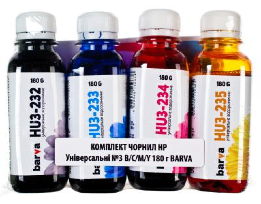 Чорнило BARVA HP Universal №3 B / C / M / Y 4х180г (HU3-180-MP) - це якісні чорнила, які призначені для заправки картриджів струменевих принтерів, СНПЧ і ПЗК. Всі чорнила Barva розробляються, тестуються і виробляються в Україні. Забезпечують точну передачу кольору і півтонів на фотографіях при друці на всіх видах спеціального фотопаперу Barva. Чорнило розфасовані в спеціальні флакони для зручної заправки. Основна перевага водорозчинних чорнил - більш природне перенесення кольорів. При друку фотографії водорозчинним чорнилом, вони вбираються глибоко в фотопапір, добре змішуються між собою і виходить природні відтінки основних кольорів. Фото виходить стійким до механічних впливів. Такий вид чорнила використовують для повноколірного друку завдяки високій якості перенесення кольорів і невисокою собівартістю. Особливості: продукт, ціна якого вас приємно здивує, вироблений в Україні; сумісні не тільки з оригіналом, але й з чорнилом інших виробників; поліпшена стійкість кольору, якість перенесення кольорів і самого процесу друку. |