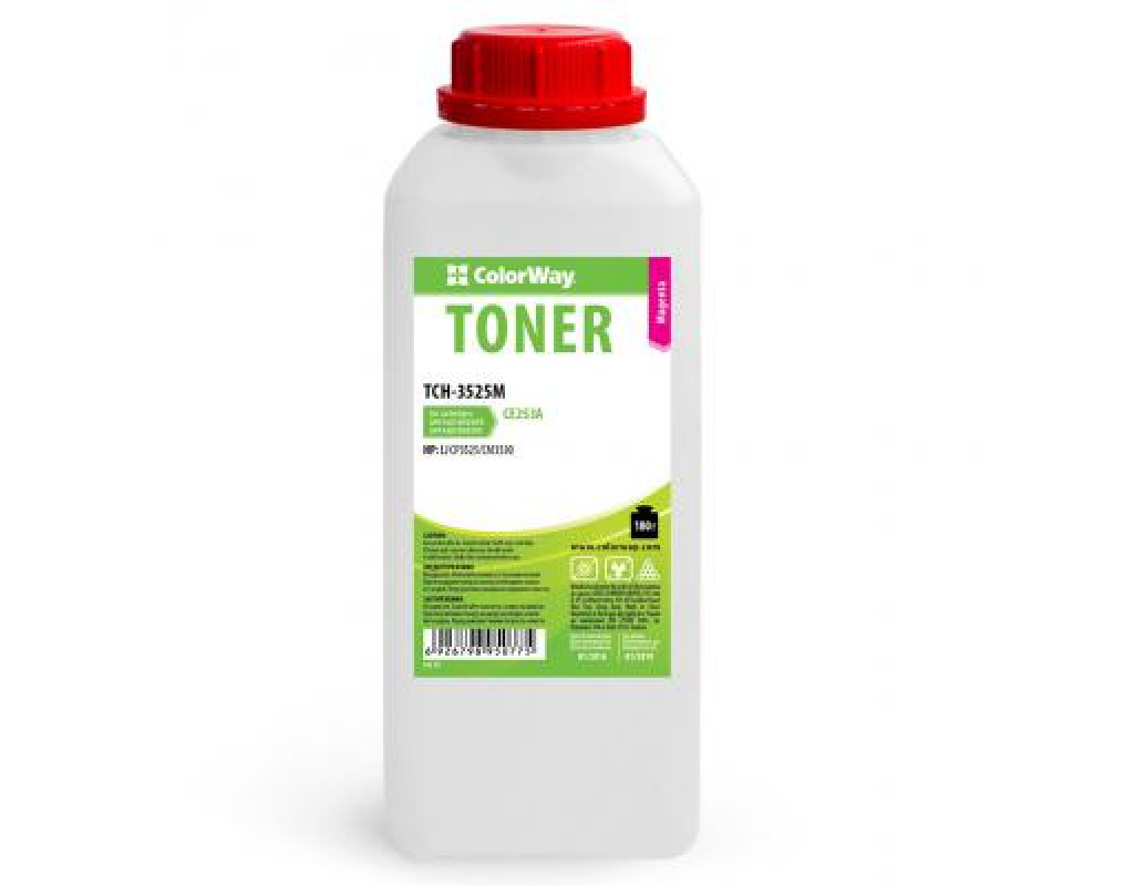Якщо Ви використовуєте в роботі принтер або копіювальний апарат, значить, зустрічаєтеся з питанням заміни тонера або чорнила. HP CLJ CP3525 180g Magenta ColorWay (TCH-3525M) - високоякісний тонер для лазерних принтерів. Цей тонер, відрізняється не тільки високою якістю, завдяки вдосконаленій технології виробництва, але і зручною упаковкою та особливим дизайном. При цьому фасовка здійснюється таким чином, щоб забезпечити зручне і просте використання. Асортимент тонерів данної компанії підходить до всіх різновидів картриджів для популярних принтерів.