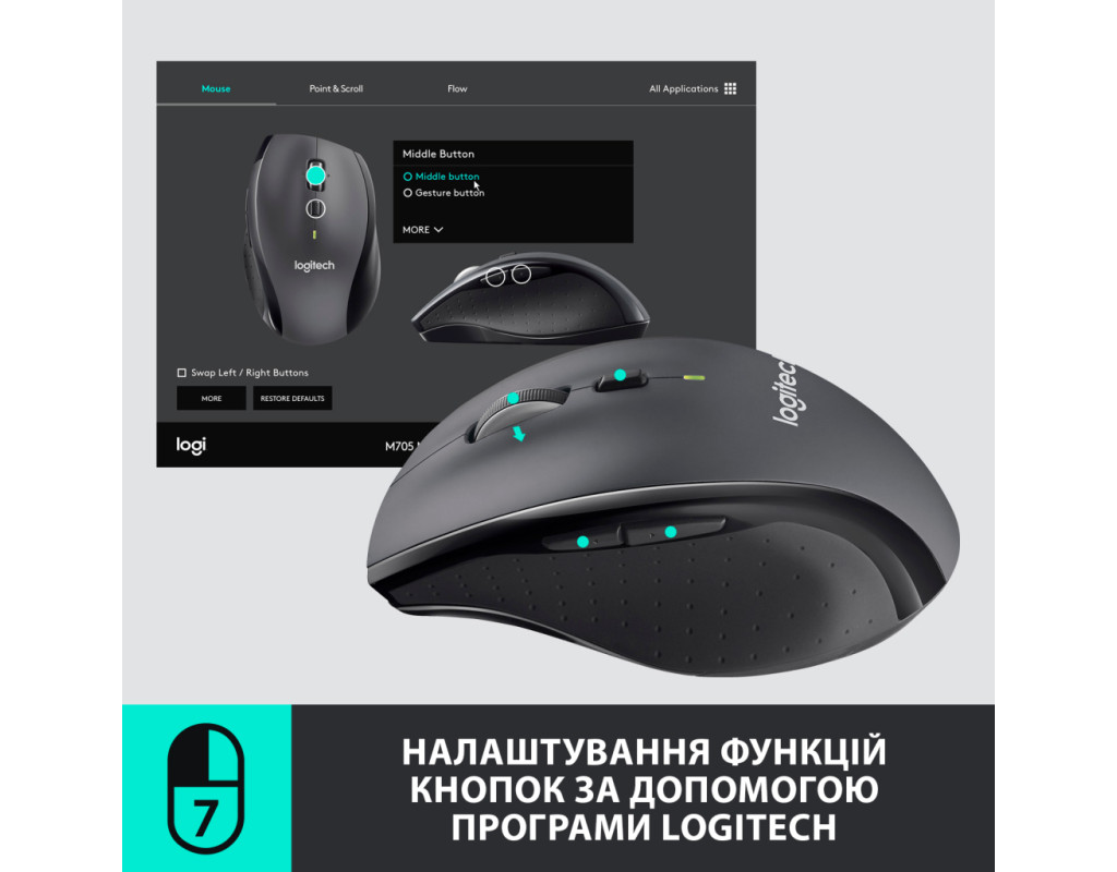| Мишка Logitech M705 Marathon (910-001949) — ваш ідеальний бездротовий партнер для ноутбука, що поєднує в собі якість, інтегровані технології та зручний дизайн. Вона відзначається класичним стилем і створена для тих, хто цінує комфорт та практичність. Завдяки бездротовому підключенню через USB-адаптер 2.4 ГГц, ця мишка забезпечує надійний та стійкий зв’язок без затримок, що дає вам свободу маневру. Унікальний приймач Logitech Unifying настільки малий, що ви можете залишити його підключеним до вашого ноутбука під час перенесення, і додатково насолодитися можливістю під’єднати декілька пристроїв одночасно. Однією із головних переваг M705 є неймовірна тривалість роботи від батареї — аж до трьох років на одному комплекті батарей типу AA. Це дозволяє зекономити час, гроші та зберегти природні ресурси, практично виключивши потребу в частих змінах батарей. Наявність індикатора заряду завчасно попередить вас, коли прийде час замінити живлення. Лазерний датчик забезпечує оптимальну чутливість і точність відстеження курсору на різноманітних поверхнях, за винятком скляних і дзеркальних, даруючи вам плавний і безперебійний контроль. А роздільна здатність до 800 dpi гарантує ефективність при виконанні щоденних завдань. В мишці є 6 програмованих кнопок, які ви можете налаштувати під свої потреби, додаючи зручності у використанні. Особливий акцент зроблено на ергономічній конструкції, що враховане для роботи правою рукою. Спеціально розроблений дизайн з адаптованою кнопкою для великого пальця дозволяє природне розташування руки, зменшуючи втому під час тривалої роботи. Logitech M705 також підтримує режим надшвидкісного прокручування, що значно полегшує перегляд довгих документів і веб-сторінок, надаючи вам можливість швидко і точно переміщатися по списках та слайдах. Ця миша, виконана в чорному та темно-сірому кольорах, має компактні розміри — 109 х 71 х 42 мм, що робить її ідеальною для використання як вдома, так і в офісі. Подаруйте собі зручність та надійність з Logitech M705 Marathon та насолоджуйтеся бездоганною функціональністю щодня. |