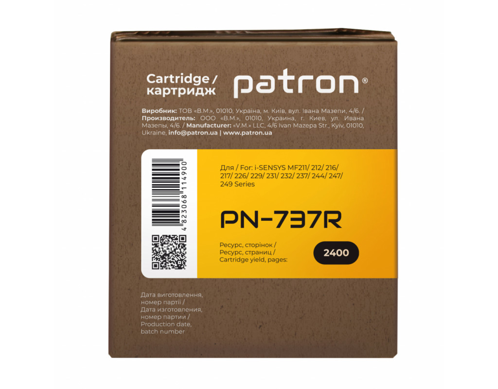Тонерный картридж Patron для використання в монохромних лазерних друкуючих пристроях. Є найвигіднішим рішенням для користувачів, які багато друкують. Виготовлений з використанням корпусу оригінального картриджа. Рекомендований для багаторазової перезаправки завдяки міцному корпусу і новим комплектуючим, які забезпечують довгострокову екстра-економію. Якість друку і ресурс тестуються за міжнародним стандартом STMC. Тестовий відбиток вкладений в упаковку картриджа.