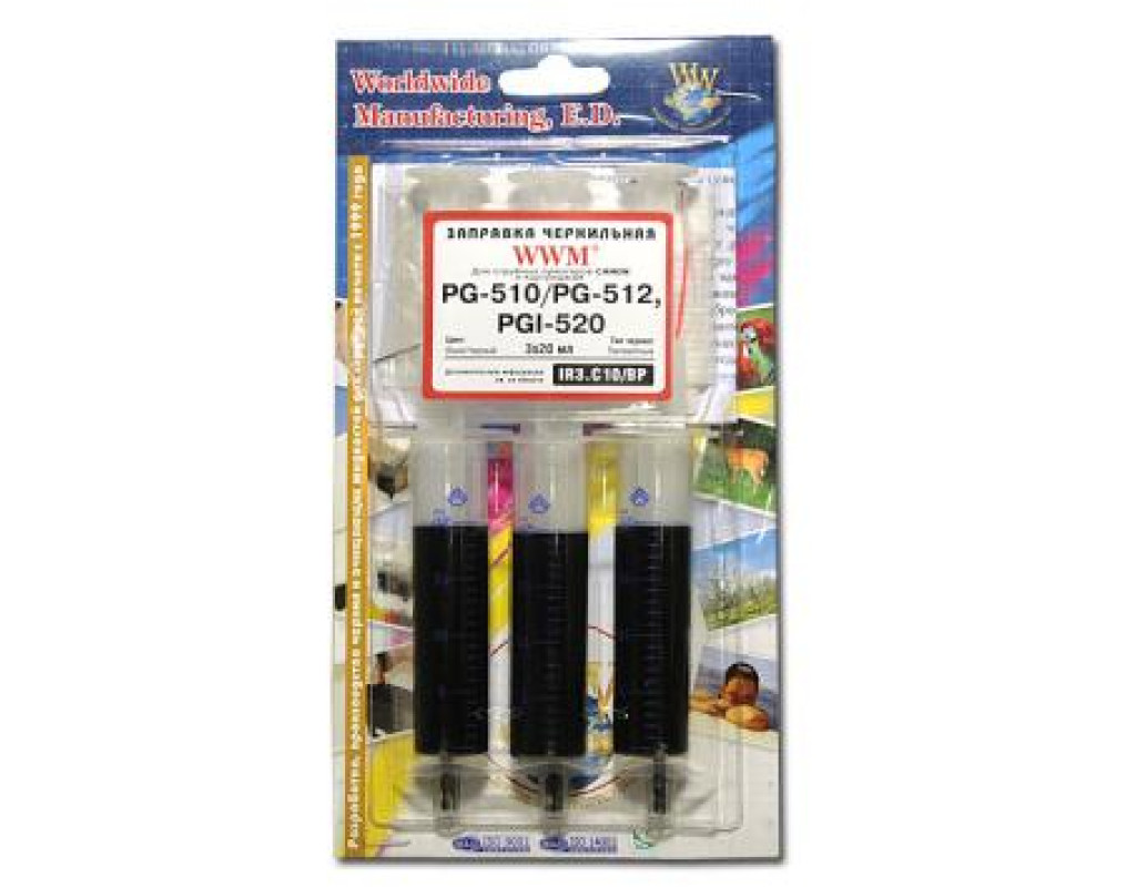 Заправний набір WWM Canon PG-510 / PG-512 (3х20 мл) Black Pigmented (IR3.C10 / BP) Заправний комплект для PG-510 / PG-512. Заправний набір WWM Canon PG-510 / PG-512 (3х20 мл) Black Pigmented (IR3.C10 / BP) для струменевих принтерів Canon, призначений для самостійної заправки картриджів, і може без особливих складнощів бути використаний як в офісі, так і в квартирі . До складу цього заправного набору входить три ємності для заправки, з 20 мл пігментного чорнила чорного кольору. |
