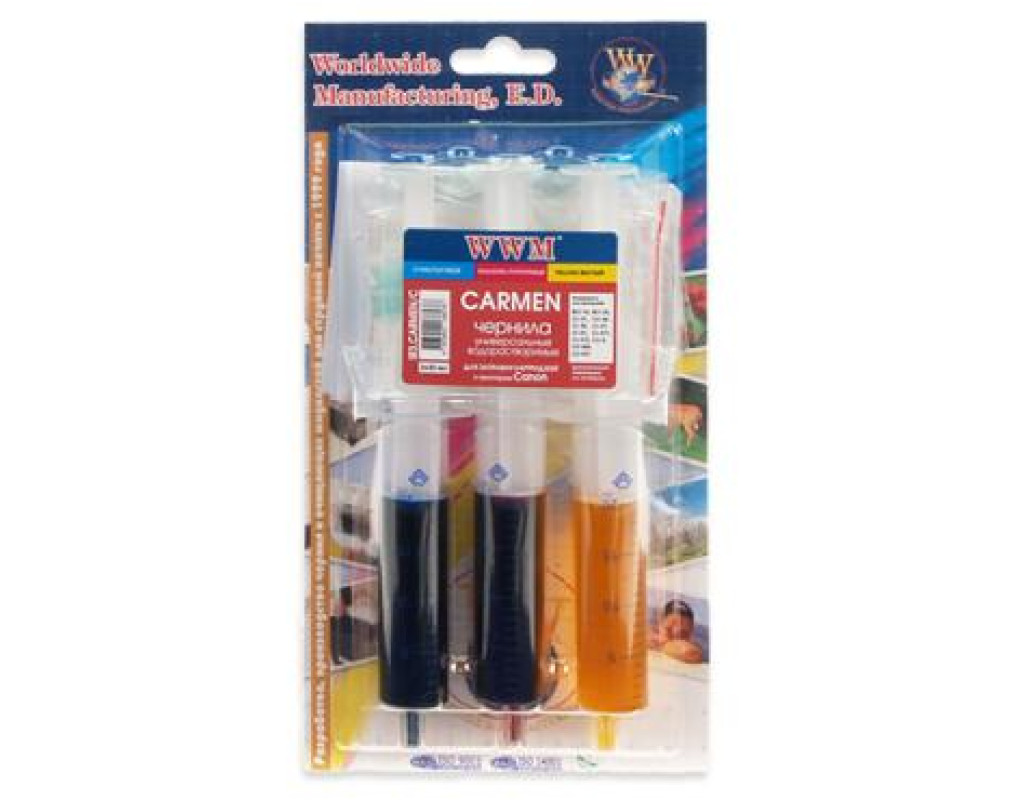 Заправний набір WWM Canon (3 x 20 мл) C / M / Y CARMEN (IR3.CARMEN / Заправний набір для струменевих принтерів Canon, призначений для самостійної заправки картриджів, і може без особливих складнощів бути використаний як в офісі, так і в квартирі. |
