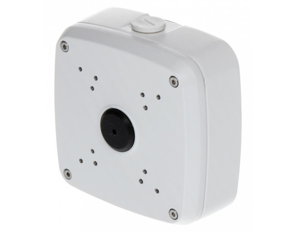 Кріплення для відеокамери Dahua DH-PFA121 – герметичний всепогодний алюмінієвий комутаційний бокс з різьбою М20 (G1/2"), призначений для установки вуличних камер відеоспостереження. Це металева розподільна коробка PFA121 для камер відеоспостереження. Вандалостійка герметична розподільна коробка для відеоспостереження, призначена для кріплення камер відеоспостереження вагою до 3 кг, застосовується для купольних відеокамер і для спрямованих/циліндричних камер відеоспостереження, поворотних Speed Dome відеокамер. Вона призначена для захисту кабельних з'єднань від погодних факторів, зручності монтажу, а також для естетичного вигляду. Вулична розподільна коробка DH-PFA121 виготовлена зі сплаву антикорозійного металу і алюмінію. Встановлюється як на вулиці, так і в приміщенні на стіні, на стовпі, на стелі, на паркані.