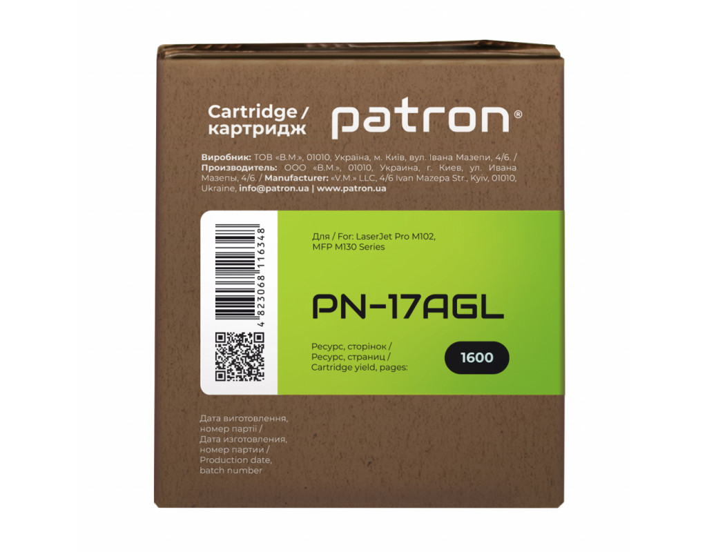 Тонер-картридж HP LJ CF217A (PN-17AGL) PATRON GREEN Label вигідне рішення. Картридж призначений для використання в лазерних принтерах та БФП. Дана серія картриджів – це нове економічне рішення для користувачів, які прагнуть оптимізувати витрати на друк, не втрачаючи в якості відбитків і надійності продукту.