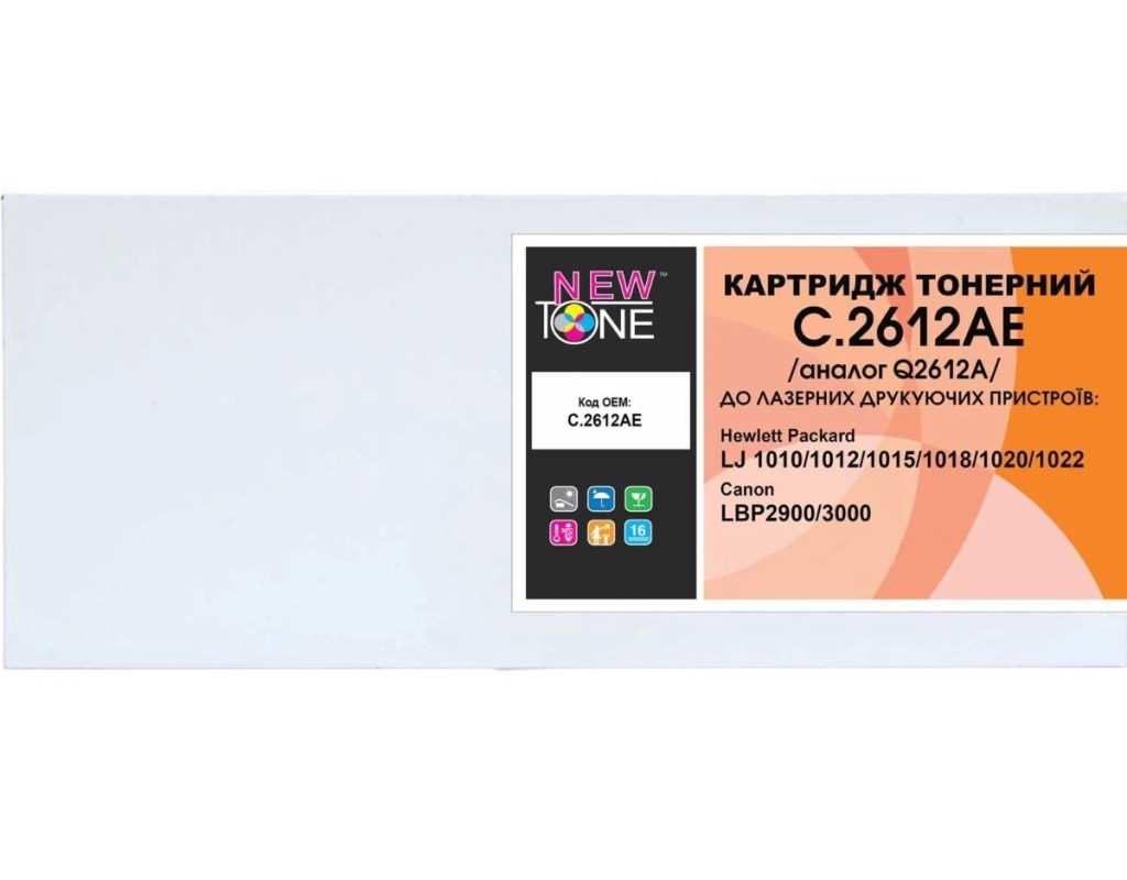 | Картридж NewTone HP LJ 1010/1012 (C.2612AE) Ресурс картриджа NewTone HP LJ 1010/1012 (C.2612AE) - 2000 листів, при 5% заповненні. Якість друку і ресурс тестуються за міжнародним стандартом STMC. Сумісні моделі з NewTone HP LJ 1010/1012 (C.2612AE): HP LJ 1010/1012 |